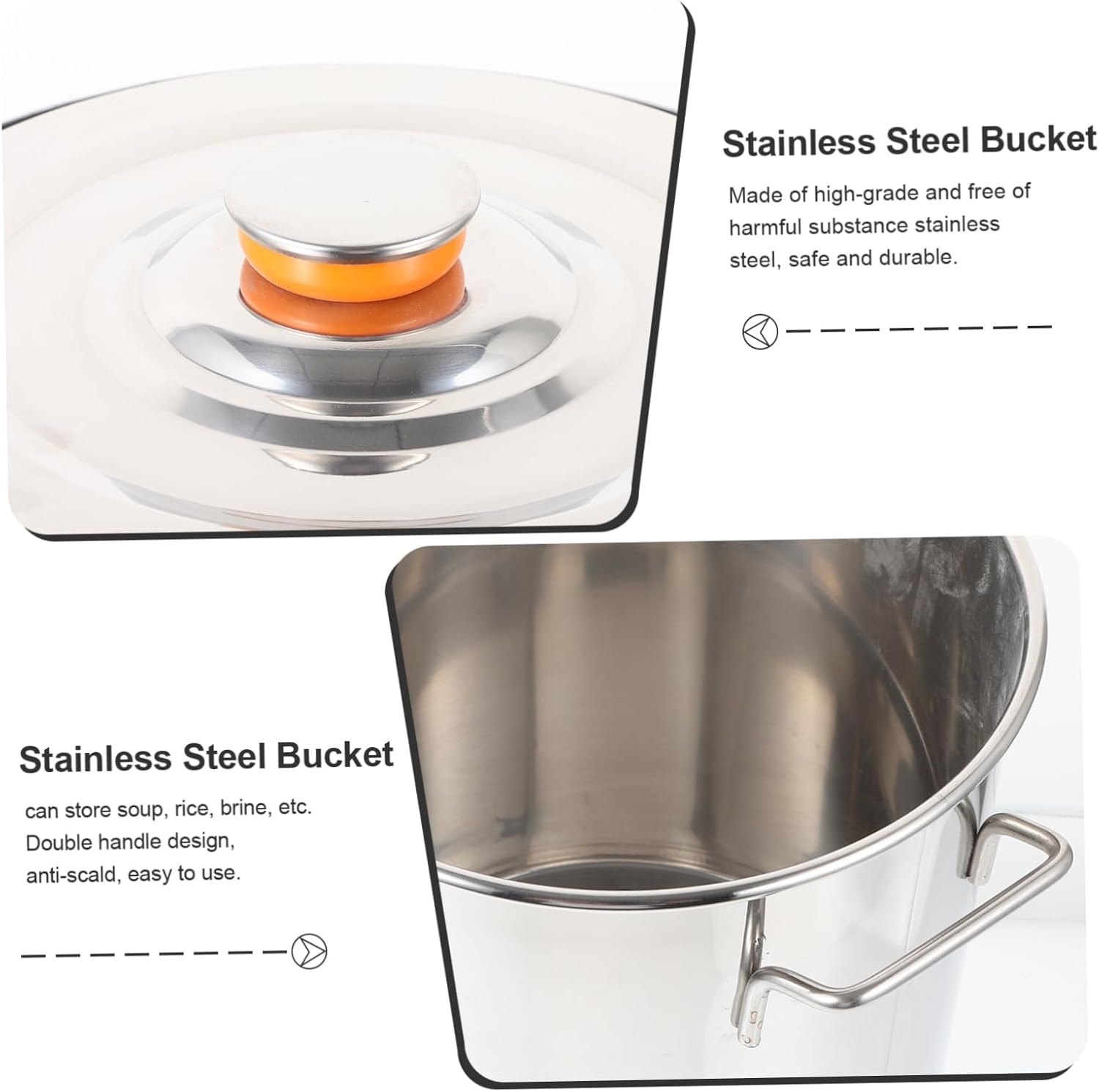 Package List 1 x Soup Pot with Lid Characteristics -Note:Random color and style of the accessory brine bucket. -Material:Stainless Steel stainless steel crawfish boiler - Size: 26.00X26.00X25.00cm/10.22X10.22X9.82in stainless steel boiler -Color:Silver crawfish boiler -The handles on both sides facilitate the movement of this stainless steel soup pot crawfish cook pot. -This stainless steel pot has a wide range of uses, it can be used with the leaky pot together cooking boiler. -Can suspend the lid on the bucket, always pay attention to the inner food cooking situation pot -This stainless steel pot has a large capacity and can meet the needs of a large number of people seafood cooking bucket. - stainless steel construction very easy to clean, , and large crawfish pot.Goods Descriptionseafood cooking bucket The ergonomic handle is easy to use.cooking bucket This is a soup pot, made of high-class stainless steel material, and .kitchen soup pot Suitable for hotels, schools, homes and other places.crawfish cook pot The deepen structure of the pot can keep the heat in the pot, ensuring an even temperature during cooking