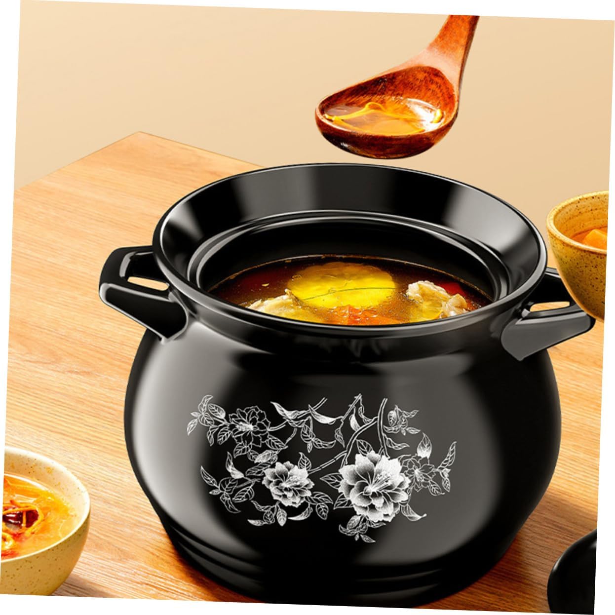 Package Include 1 x pot Characteristics -Note:The pattern and color of accessory is random cauldron cooking pot -Product Info:Casserole Stew Pot -Material: Ceramic cook pot. -Color: Assorted color soup cooking pot for chinese soup. -Size: 22.00X18.00X16.50cm/8.65X7.07X6.48in cooking pot - workmanship and smooth surface make this pot practical large pot for cooking -Designed with two handles, thus you can hold the pot easily one-piece pot -Heat-resistant and scald-proof cover, there are vents for venting stew pots with lids -Smooth and no-stick pot inside wall, easy to wipe and clean soup pot chinese -Smooth surface and thick texture, and cooking pots with lids.Goods Descriptionstainless pot Two side comes with handles, which the comfort for your holding.cooking pots with lids Simple and convenient to cook with it.divided pot for cooking Are you looking for a practical cooking pot? Do you want to make delicious soups for your families? This pot will be