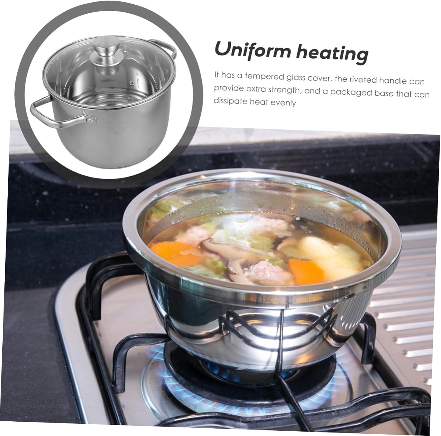 Package Include 1 x Steamed Soup Pot Characteristics - Material: Stainless steel Cooking . - Size: About 25.4 x 20 x 16.8 cm/10x7.87x6.61 inches. - Color: Silver. - It has a tempered glass cover, the riveted handle can provide extra strength, and a packaged base that can dissipate heat evenly Soup Steamed Pot. - Food grade grade stainless steel substrate, healthy and , easy to clean without odor Multi-Function Steamed Pot. - for families, it can help you save on fuel costs and produce delicious, nutritious meals in minutes Cookware Pot. - The surface of the pot body is polished by the brush surface, which is not easy to scratch, and has no leaking and curved design, so that the soup does not leak Stainless Steel . - Energy saving and time saving, suitable for multiple heat sources Steamed Soup Pot.Goods InformationSoup Steamed Pot The is a good product for your home.tall stock pot Steam fast cycle food cooked faster, metal connection handle, strong and , heat insulation and anti-scalding, comfortable grip and pot lid, diversion design does not accumulate water, does not affect food taste