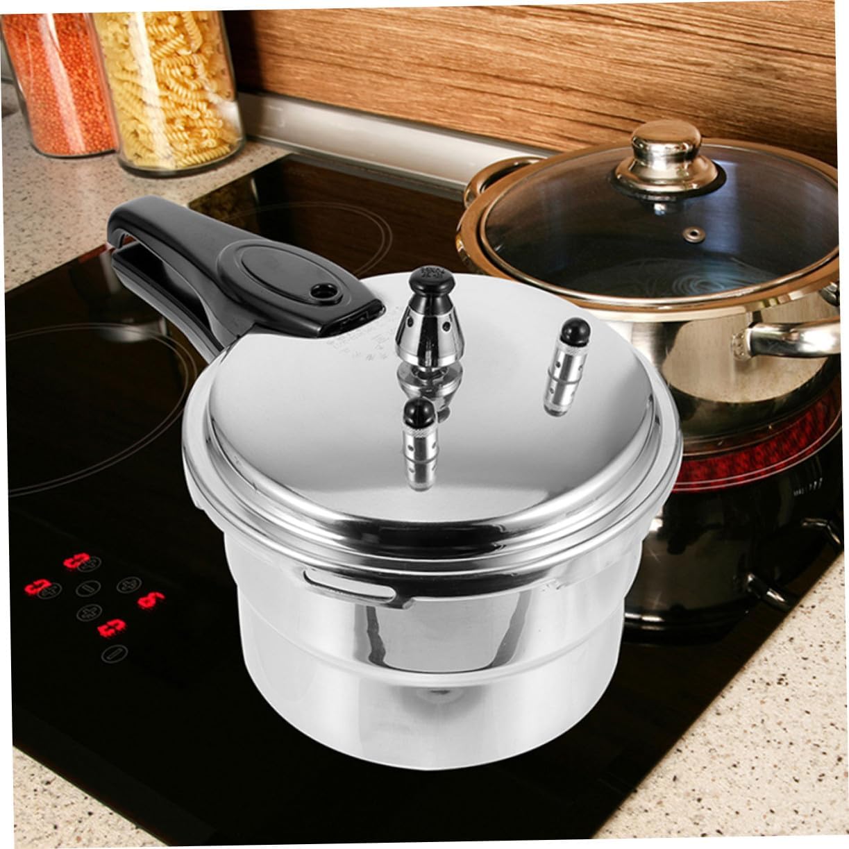 Package List 1 x High Pressure Cooker Features - Size: 39.00X21.50X20.00cm/15.33X8.45X7.86in outdoor pressure cooker -Material:Aluminum Alloy and plastic stove pressure cooker -Color:Silver gas stove cooking pot -Product Info:Household pressure cooker - With a portable and ergonomic handle for easy to hold and move this pot, convenient and practical to use home pressure pot. - Kitchen pressure pot can help to cook food quickly, and save time and effort for you pressure pots for cooking. - workmanship, thickened pot body, pressure pot will not deform and fade easily pressure cookers. - Aluminum alloy and plastic material, this pot safe and for easy to clean, which is a great cooker for you pressure cooker pot. - This pressure pot is multi uses, suitable for gas stove, electric stove etc., which is easy and convenient to use pressure pan cooker.Goods Descriptionstainless pressure cooker This pressure cooker is made of good materials, , safe and can be used for a long time.pressure pot Featuring high temperature resistant, safe and can rest assured to use.pressure cooker stove top The pressure effect of pot reduces .high capacity pressure cooking pot This pot is a great kitchen cooker for you and your families