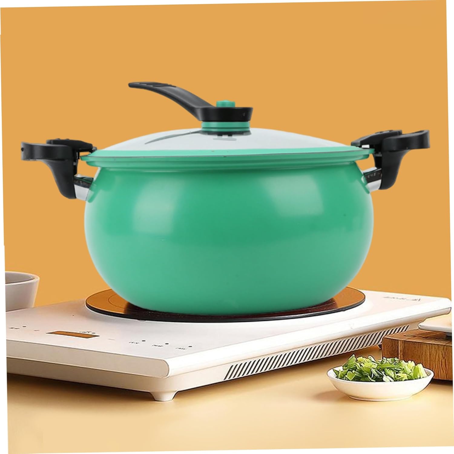 Description: The Mini Pressure Cooker is a compact and efficient solution for fast heating and versatile cooking, designed to fit seamlessly into any kitchen setup. This large capacity pressure pot features lock handles for safety and a non-stick multi-function micro stockpot that works perfectly on gas, induction, or electric stoves. Its stable construction ensures long-lasting use, while the non-stick interior makes cleaning effortless. Ideal for small families or quick meal preparation, this mini pressure cooker is perfect for simmering soups, steaming vegetables, or preparing single servings with ease. Whether you're cooking on a gas stove or an electric one, this versatile pot is compatible with all types of stoves, making it a must-have addition to your kitchen tools. Features:. Micro Pressure Cooker. -Color: green. -Material: refined iron. -Size: about 28 cm/11.02 inch. Note:Manual measurement, please allow slight errors on size.The colors may exist slight difference due to different screens. Package Including 1 x Micro Pressure Cooker