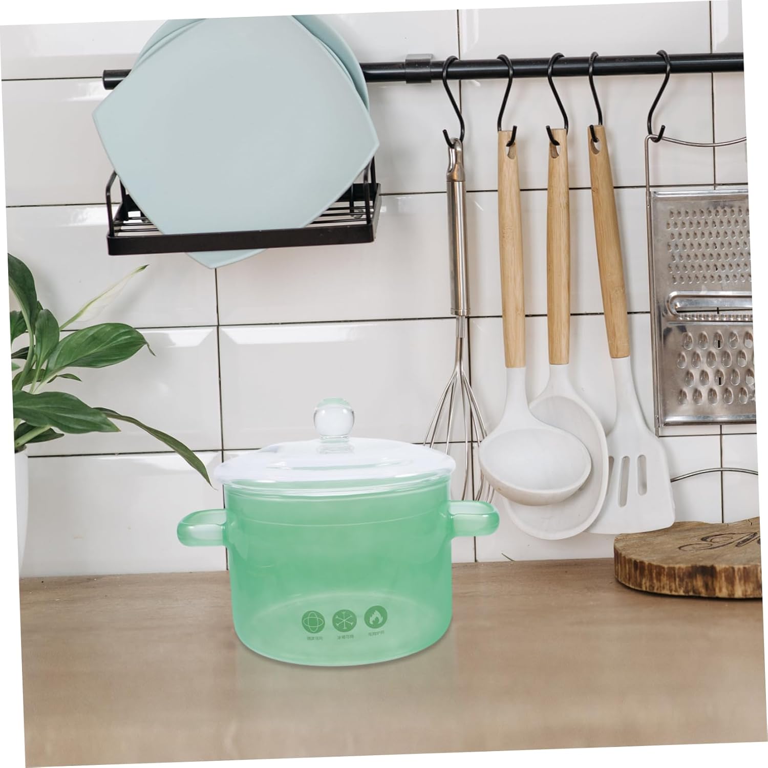 Package Include 1 x Glass Cooking Pot Characteristics -Color:Green glass boiling pot -Material:Glass clear cooking pot -Allpurpose use: can be used for cooking soups, porridge, and more, offering a versatile cooking for various dishes clear glass pots for cooking -Size:21.00X15.00X10.50cm/8.25X5.89X4.13in pasta pot - preparation: ideal for quickly preparing ramen noodles, making it suitable for busy individuals clear soup pot -Easy to transport: the dual handle design allows for easy transportation, making it convenient to enjoy meals anywhere pasta cooking pot -Effortless cleaning: designed for easy cleaning with no hard to reach areas, making maintenance a breeze glass pot with lid -Safe and practical: made from glass, providing a safe cooking experience glass stovetop pots for cookingGoods Descriptionglass pot with lid Ideal for preparing food, this glass pot offers a safe and healthy cooking option.glass boiling pot The dual handles make it easy to handle, and its heat-resistant nature promotes it can be used on various stovetops without any issues.pasta pot The clear glass allows you to keep an eye on the food, ensuring it is cooked to perfection