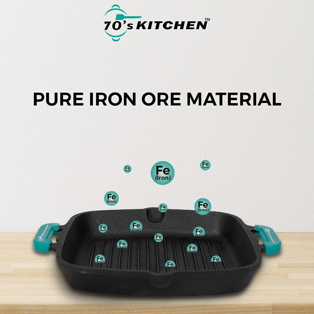 Cast iron cookware has always been worth every penny for its benefits and durability. That one perfect gift to pass onto your next generations. What makes 70's kitchen unique? - from soaking the products in a salt-water for a day to organic heating, we go by a traditional way of seasoning. And the cookwares are pre-seasoned. We season it for 3times before sending it to you. Use & care - upon receiving, wash the skillet with warm water using mild soap & scrub to clean all the particles off and dry with a soft cloth. After that, heat the pan for 5-6mins and allow it to cool down to room temperature. Then, when it is a little hot, apply the cooking oil all over the surface and heat it again for 3-5mins before you start to cook. Repeat the process if required and continue to apply oil when not in use to make it non-stick and get the best result out of it.
