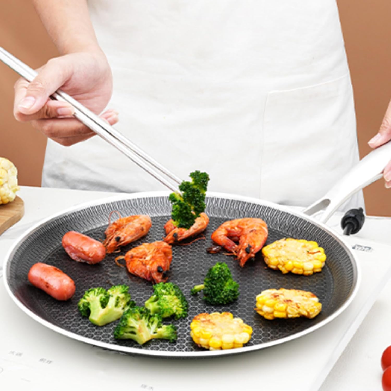 Prepare perfectly cooked eggs and more with this stainless steel flat pan featuring a honeycomb non-stick coating. Designed for stove top, cooktop, or outdoor barbecue use, it provides even heat distribution to prevent hot spots and consistent results. Durable 304 stainless steel construction resists and simplifies maintenance while the honeycomb reduces sticking and allows for easy food release. Available in 24cm, 26cm, and 28cm sizes, this versatile pan is perfect for cooking breakfast, brunch, or quick meals at home, camping, or outdoor gatherings.Product Attributes:Product Size: Inner diameter 24cm/9.44, 26cm/10.23in, 28cm/11.02inMaterial: 304 stainless steelWeight: 635g, 715g, 800gNote:Due to different lighting and screen settings, the item color may be slightly different from the picture.Due to different manual measurements, please allow a 1-2cm difference in size.Product List: pancake pan * 1 piece
