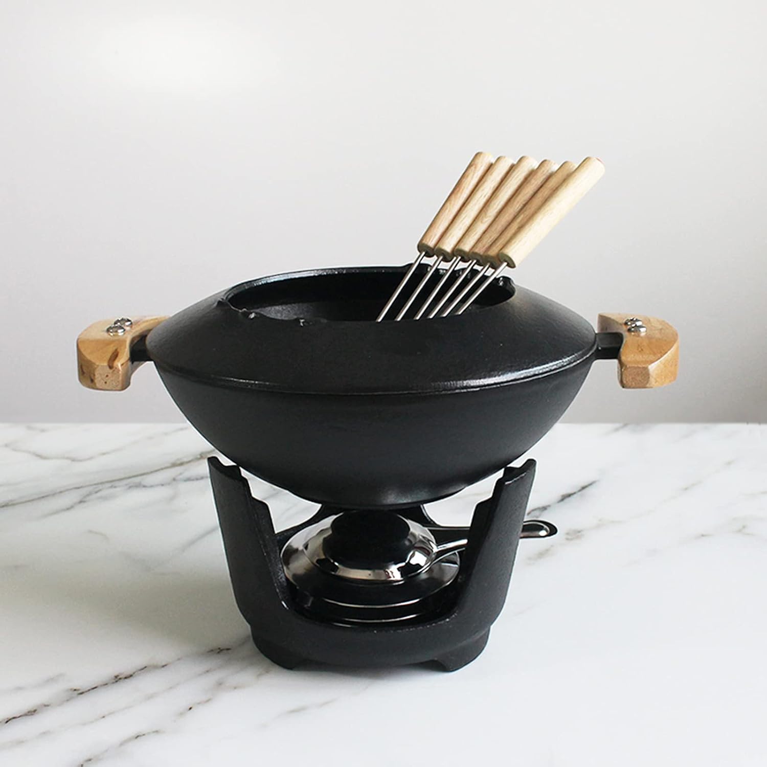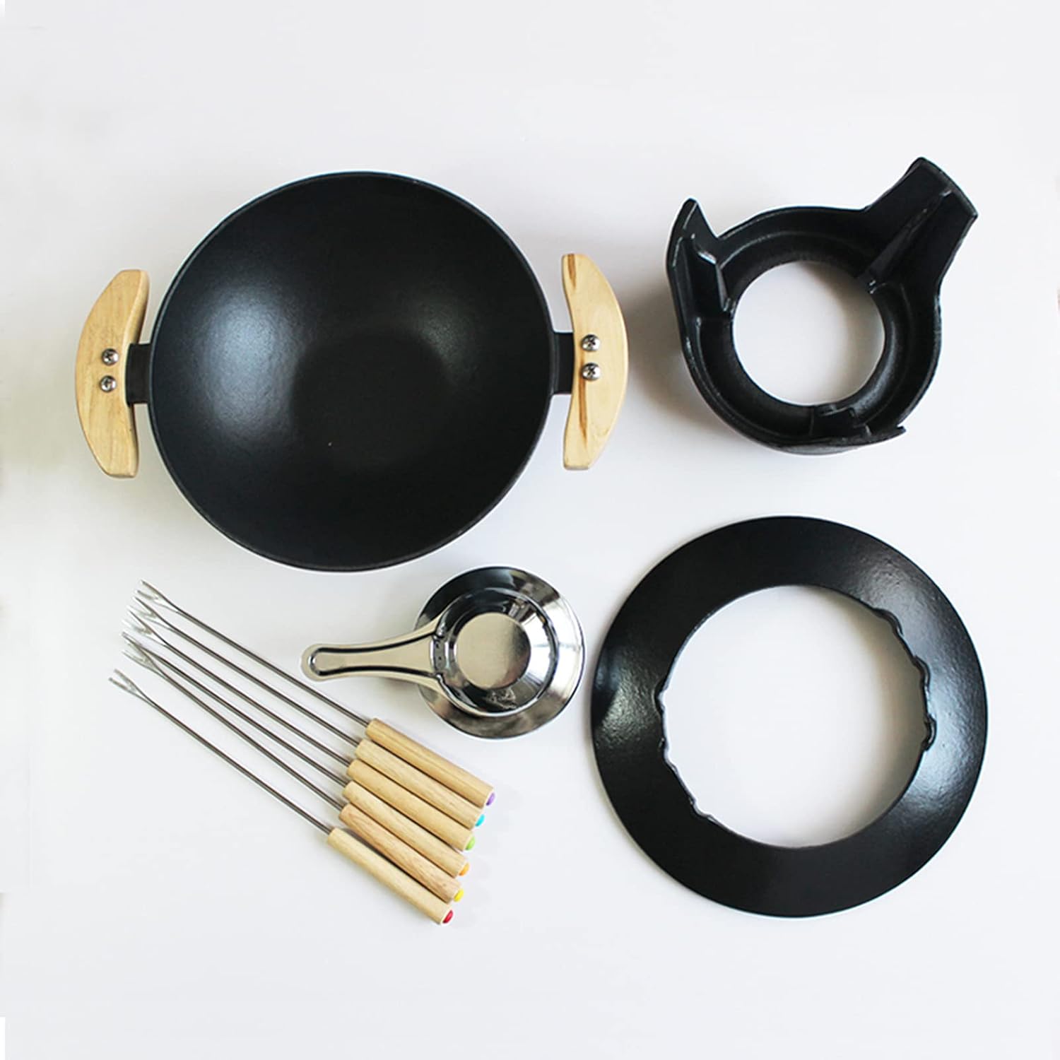 "What could be nicer than eating cheese fondue with a group of friends or with family? We now offer the fondue set, created especially for parties. It's big enough to handle quite a party! Because cheese fondue is also excellent as a hot snack. The fondue pan is heat-resistant so you can easily prepare the fondue directly in the pan on the stove. Let's get this party started! Specifications: Name: Cheese Fondue Pot Material: Cast iron, enamel Size: about 21CM Color: Black Packing List: Cheese Fondue Pot Set * 1