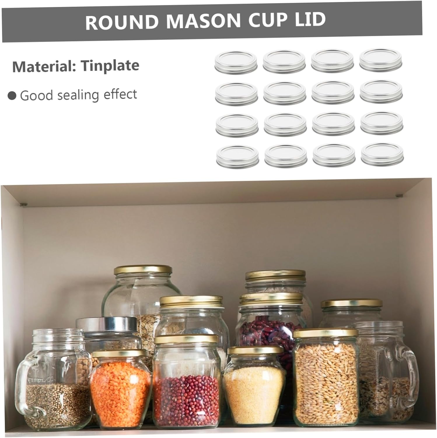 Package Include silver rings covers Characteristics - Color: Silver reusable canning lids. - Material: Tinplate jar sealing lids. - Size: 7.00X7.00X1.50cm/2.75X2.75X0.59in fruit preservation cover sealing cover. - lid is easy to use, easy to clean, can be used in the dishwasher, reusable, and storage wide mouth jar lid. - This is a matching split tinplate lid, which is enough for your daily use. Compared with the one-piece jar lid, it has a stronger airtightness split-type metal canning jar lids. - These can lids can be used to store small items such as dry food, kimchi, fruits, juice, biscuits and screws Reusable Canning Jar Caps. - Allows of an airtight seal and keeps your food fresh longer time, preventing the growth of jar attachments. - The bottle caps are made of tinplate, which is and you don't have to worry about its quality metal jar lids.Goods Description covers This set contains enough tinplate split covers to meet your various needs.canning accessories These are standard jar replacement covers and rings.regular lids You can use it with confidence. jar attachments It is made of tinplate material, with a sealing coating, and the sealing effect is good