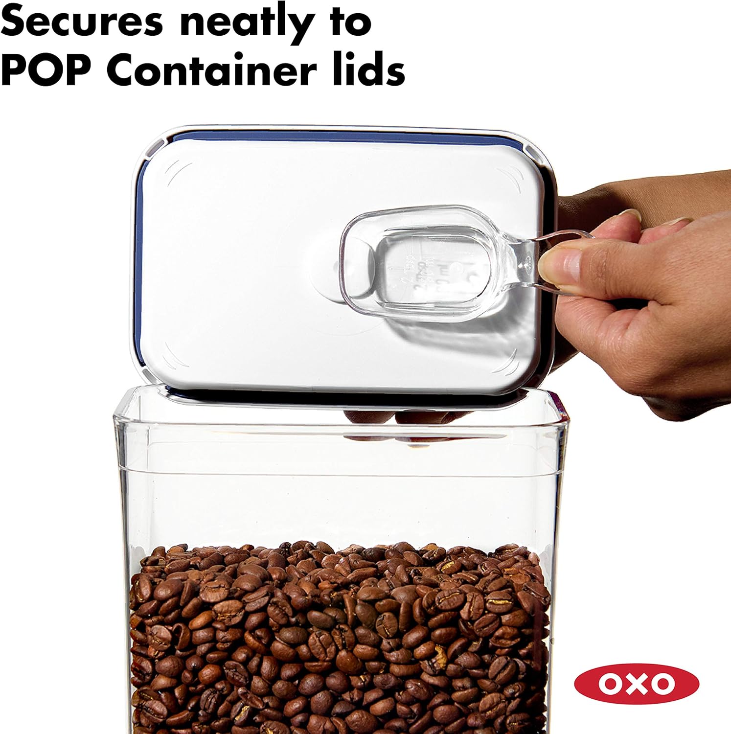 OXO Brew Conical Burr Coffee GrinderBecause the best coffee starts from the grounds up, we created the OXO Brew Conical Burr Coffee Grinder to help your beans unlock their full potential. The design is simple, so nothing stands between you and your first cup. Just add beans and choose from 15 grind size settings—from fine for espresso to coarse for French press—then turn the dial to select grinding time and push to start. Stainless steel conical burrs create uniform grounds, for gold-cup flavor, and the one-touch timer keeps your last setting, so you don’t have to reset it every time. The Grinder holds up to ¾ lb (12 oz) of coffee beans in a UV-blocking hopper so your coffee tastes fresh. Finally, making great coffee doesn’t have to be a grind.OXO Good Grips POP Container Coffee Scoop, ClearOXO Good Grips POP Accessories is a brand-new line of tools designed to help you make the most of POP Containers. The POP Coffee Scoop’s 2 T / 30 mL capacity is perfect for measuring or portioning coffee beans or grinds. Like all POP Accessories, it secures neatly to the underside of new POP Container lids. Recommended for use with the 1. 7 Qt / 1. 6 L OXO POP Container, sized for 1 lb of coffee; also fits POP Containers with lid type: A, B, C, D. Dishwasher safe and BPA free.