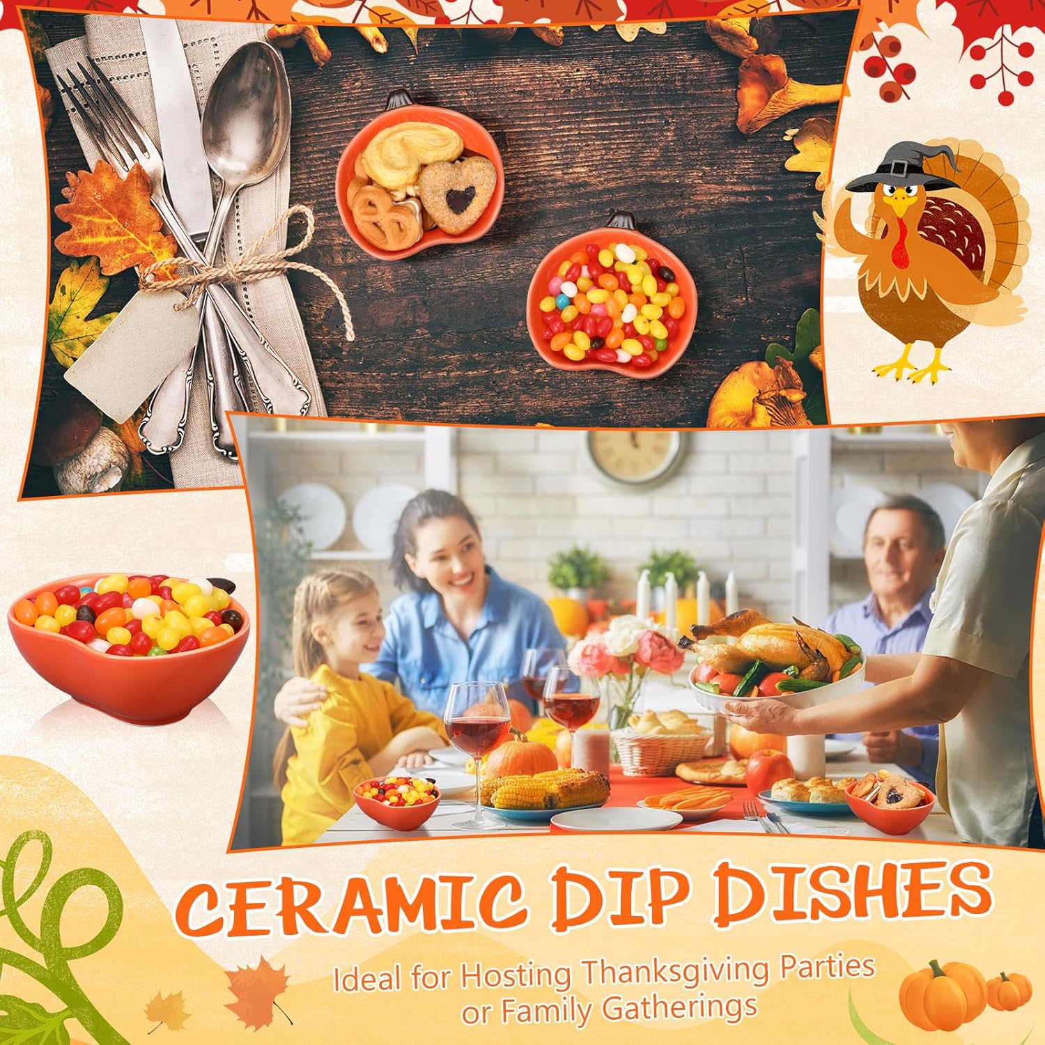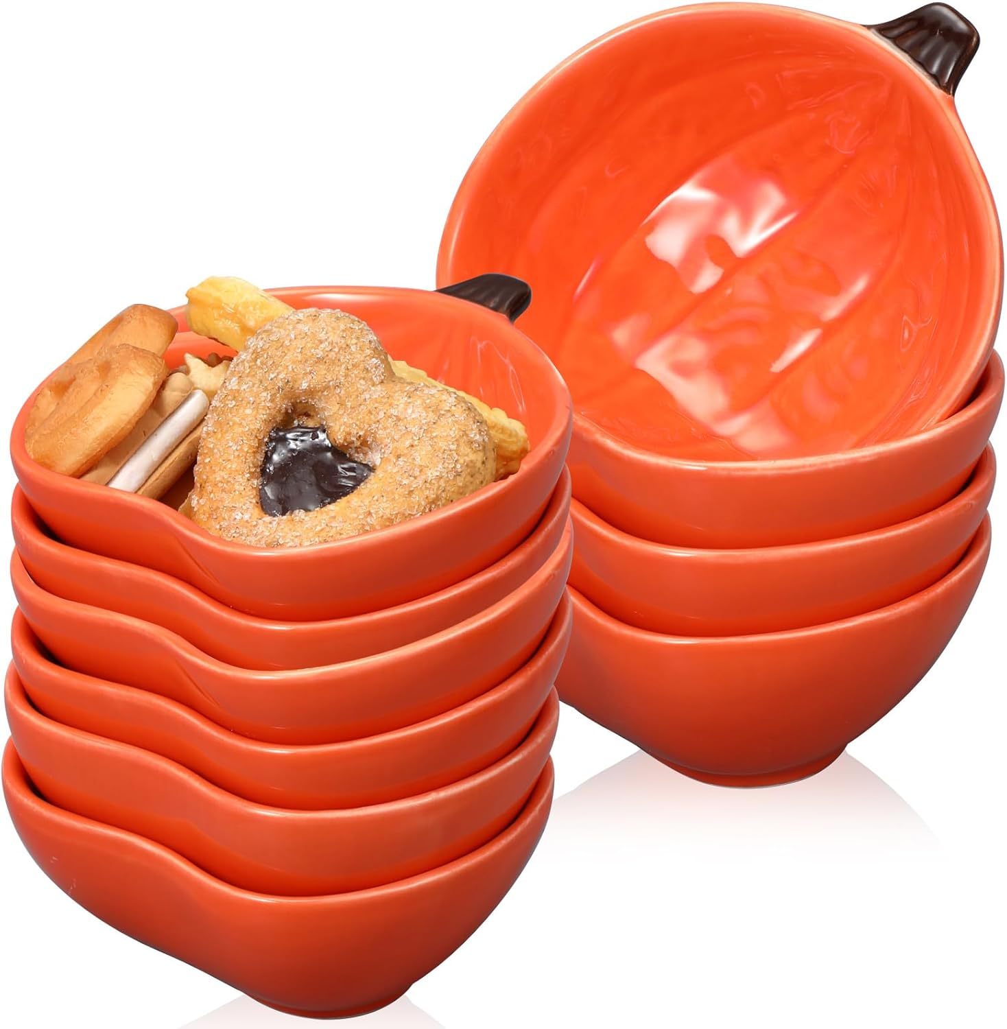 Features: Ideal Fall and Holiday Decoration: Their festive pumpkin shape and vibrant orange color, these ceramic ramekins are suitable for adding a touch of fall to your home decoration. Versatile Baking: You can use them to hold candies, nuts, and other sweet treats; They are versatile and can be applied for different purposes, making them a good addition to your kitchen. Specifications: Material: Ceramic Color: Orange Size: as shown in pictures Package includes: 24 x Fall Serving Bowls Notes: Manual measurement, please allow slight errors on size. The color may exist a slight difference due to different screen displays.