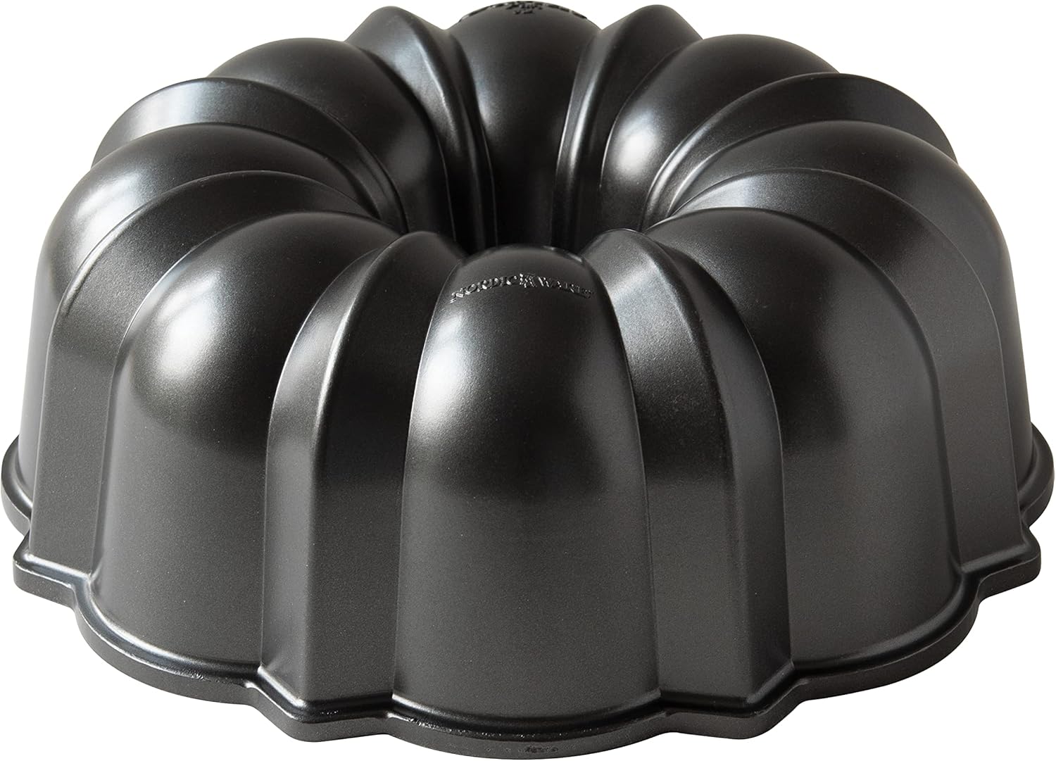 Nordic Ware Original Bundt Pan - Detailed Bundt cake tin proudly made in the USACreate the ideal original Bundt cake with this durable tin from Nordic Ware. Classic Bundt cakes are a real crowd-pleaser, and this 12-cup capacity cake tin is essential for creating desserts for special occasions. The cast aluminium material of the pans conducts heat evenly for a more uniform bake. The tin also features a premium non-stick finish, releasing the cake easily and with no fuss so the design on top stays intact.The baking pan is proudly made in the United States in our family-owned factory, to exacting standards, with over a dozen sets of hands touching each pan during our manufacturing process. Each pan is an investment that will last a lifetime. We take pride in presenting to you a genuine Nordic Ware pan. Happy baking!Use and Care1. Before initial use and after subsequent uses, hand wash with warm, soapy water. Extended soaking is not recommended2. Before each use, brush with butter or shortening and dust with flour or cocoa to coat. Baking spray containing flour may also be used. Do not use regular cooking spray3. Mixes and recipes may vary. Fill the pan no more than 3/4 full to avoid overflow4. Metal utensils, scouring pads, and abrasive cleaners should not be used on non-stick surfacesProduct Benefits at A Glance:Bundt cake tinWeight: 816gSize: 26.7cm diameter x 9.7cm heightCapacity: 12 cupsColour: GraphiteMaterial: Cast aluminiumWarranty: LifetimeMade in the USA