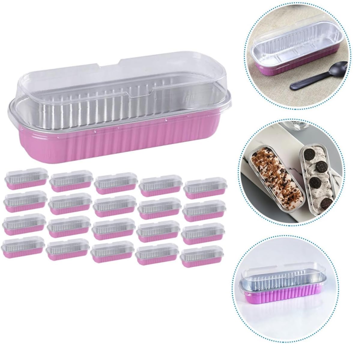 Package List Lidded Foil Pans Characteristics - Material:Aluminum foil cake container - Color: Pink loaf containers - Size: About 16.50X6.50X5.00cm/6.48X2.55X1.97in cake wrapping boxes - Capacity: 200ML packing supply - for baking, barbecue, picnic, party, food storage, both indoor and outdoor activities portable cake box. - With lightweight and compact size, Aluminum Foil Pans are easy to carry and store when not used box for cake. - The foil cake boxes can be in direct touch with food, making your baking life healthy and cake boxes with lid. - You can personalize these foil boxes with sweet ribbon to make them look more unique cake dessert boxes. - The workmanship of this product is , and you will have a experience in using it compact cake boxes.Goods Informationloaf containers Featuring multipurpose, this cake box can prevent your foods from the damage of something unhealthy.cake wrapping boxes This is a practical cake carrier.household bakery boxes The material is very , and you can rest assured to use it.dessert boxes Manufactured of
