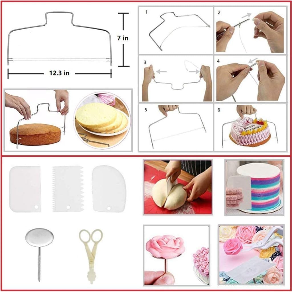 Descriptions:Different shapes and sizes offer a variety of designsMultiple molds to choose from, making it easy for you to bake.Stainless steel cake decoration nozzleThe anti falling design can effectively prevent the decorative bag cover from falling off.The cake mounting table is quiet and smooth, with smooth rotation.Package includes: cake extrusion * 1 set (excluding other demonstration products)Note:Due to manual measurement, there may be an error of 0-1.5cm in size.Due to different monitors, the colors may vary.