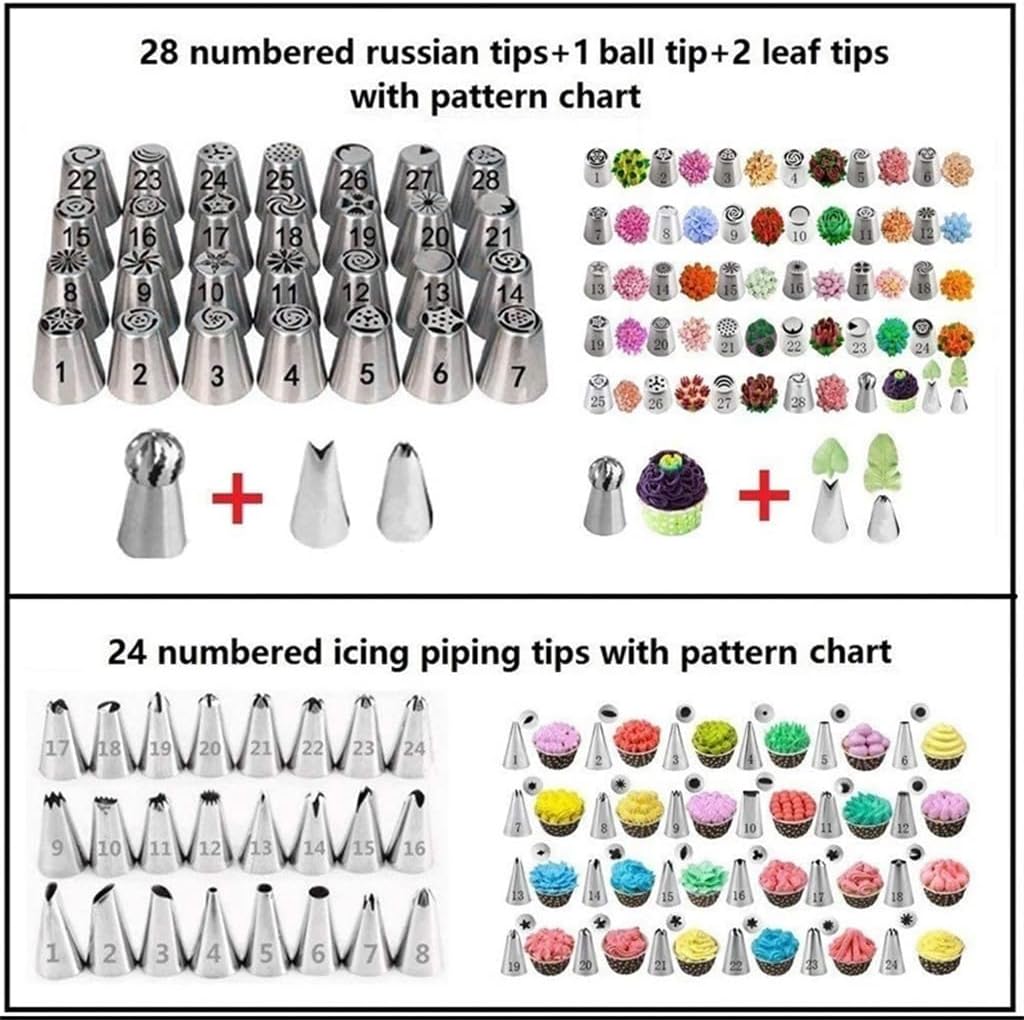 Descriptions:Different shapes and sizes offer a variety of designs.Multiple molds to choose from, making it easy for you to bake.Multi installation port set.The anti falling design can effectively prevent the decorative bag cover from falling off.Let you enjoy baking time even more.Package includes: cake extrusion * 1 set (excluding other demonstration products)Note:Due to manual measurement, there may be an error of 0-1.5cm in size.Due to different monitors, the colors may vary.