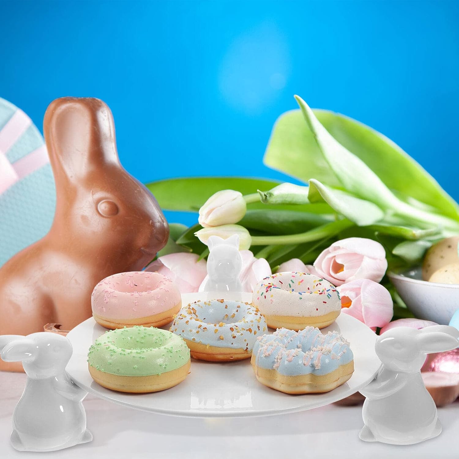 DescriptionEaster Bunny Cake Stand Ceramic Cupcake Stand Cake Holder Plates Candy Dish Snacks Cookie Dessert Display Tray Platter for Party Serving Birthday Features-Color:White;-Material:Ceramic;-Size:29.50X29.50X10.00cm/11.59X11.59X3.93in; Package Including1 x plate3 x rabbit statue