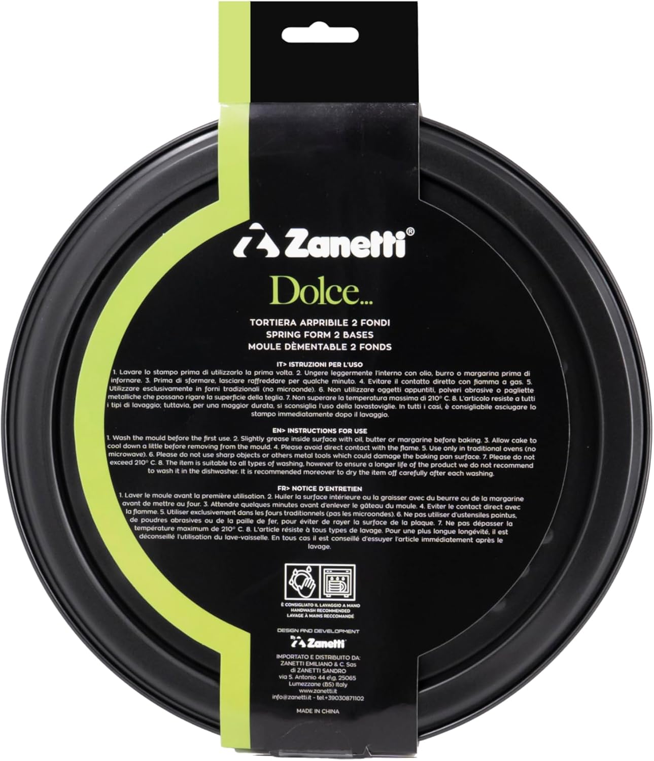 | Item Type Name | Zanetti Springform Cake Tin Diameter 24 cm, Height 7 cm, Non-Stick Carbon Steel, 2 Interchangeable Bases, Folding Ring, Black |