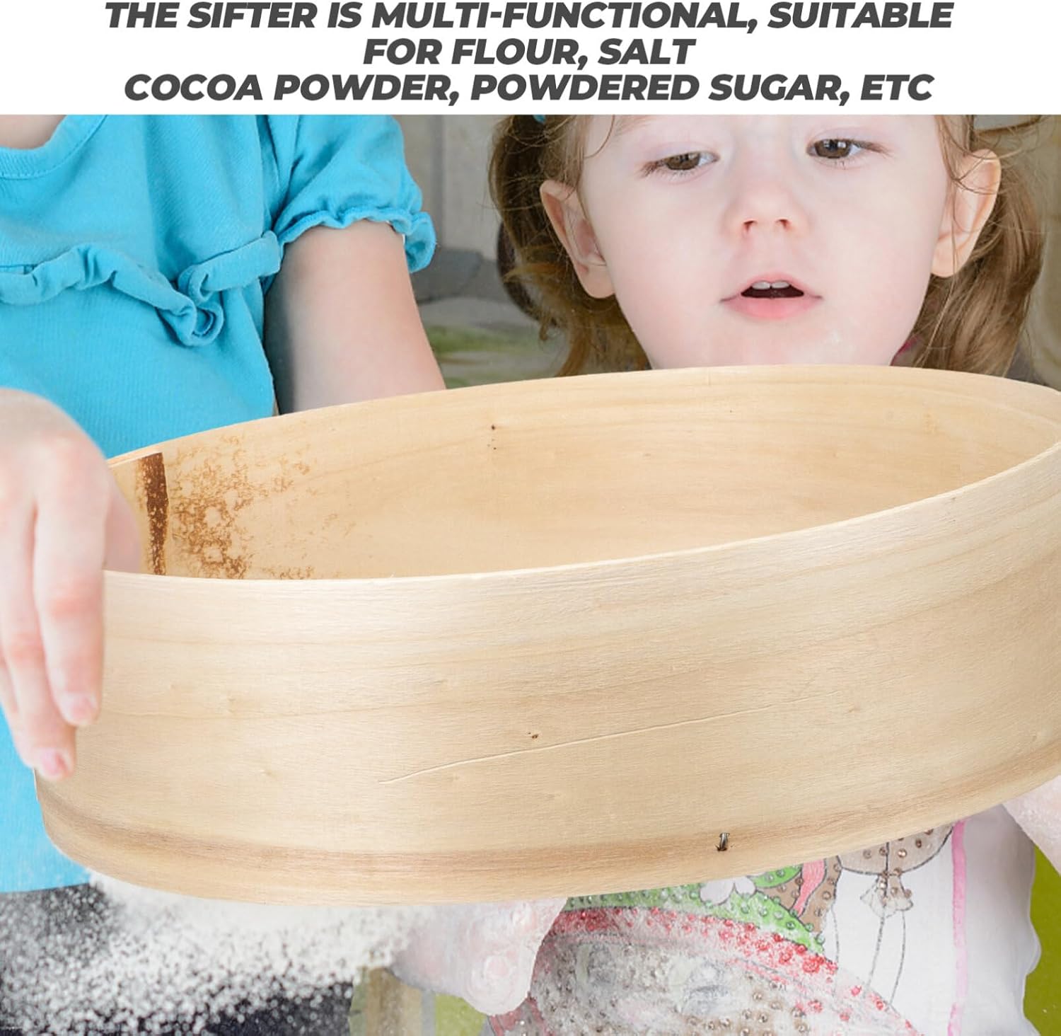 Features-Color:As Shown-Material:Wood-Size:30.50X29.00X8.50cm/11.99X11.40X3.34inPackage Including2 x flour sieve