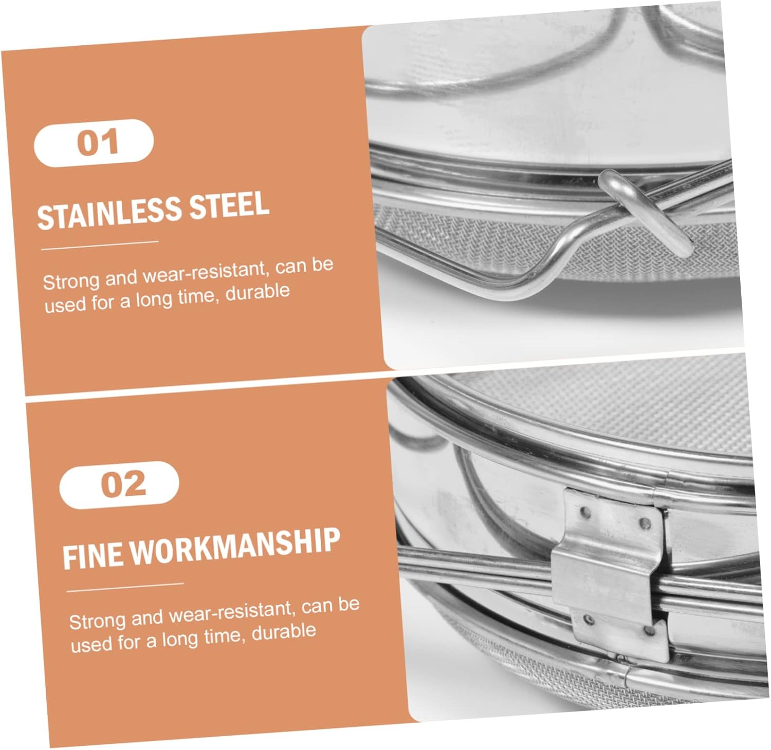 Package Include 1 x sifter Characteristics -Material: Stainless steel stainless steel flour sifter -Color: Silver stainless steel flour sieve -Size: About 24.00X24.00X8.50cm/9.43X9.43X3.34inch handheld flour filter -It is easy to hold and very convenient for you to use metal honey sifter. -Uniform mesh design, finer sieve powder, strong and stable handheld manual flour sifter. -Owning the and break resistance ability, very Stainless Steel Mesh Flour Sifter. -Fine mesh, fine sieve powder, double-layer design, easy to filter fine powder impurities flour sifter for baking. -Some flours are placed for a long time and become solid, which can be scattered after a sieve, which can be solved stainless steel powder sifter.Goods InformationStainless Steel Mesh Flour Sifter Don't miss it.baking sifter After being sieved, it is not easy to agglomerate, has high bulkiness, is easy to bake, and has a better taste.sugar flour sifters The flour sieve is made of stainless steel and is suitable for sieving powdered products such as flour