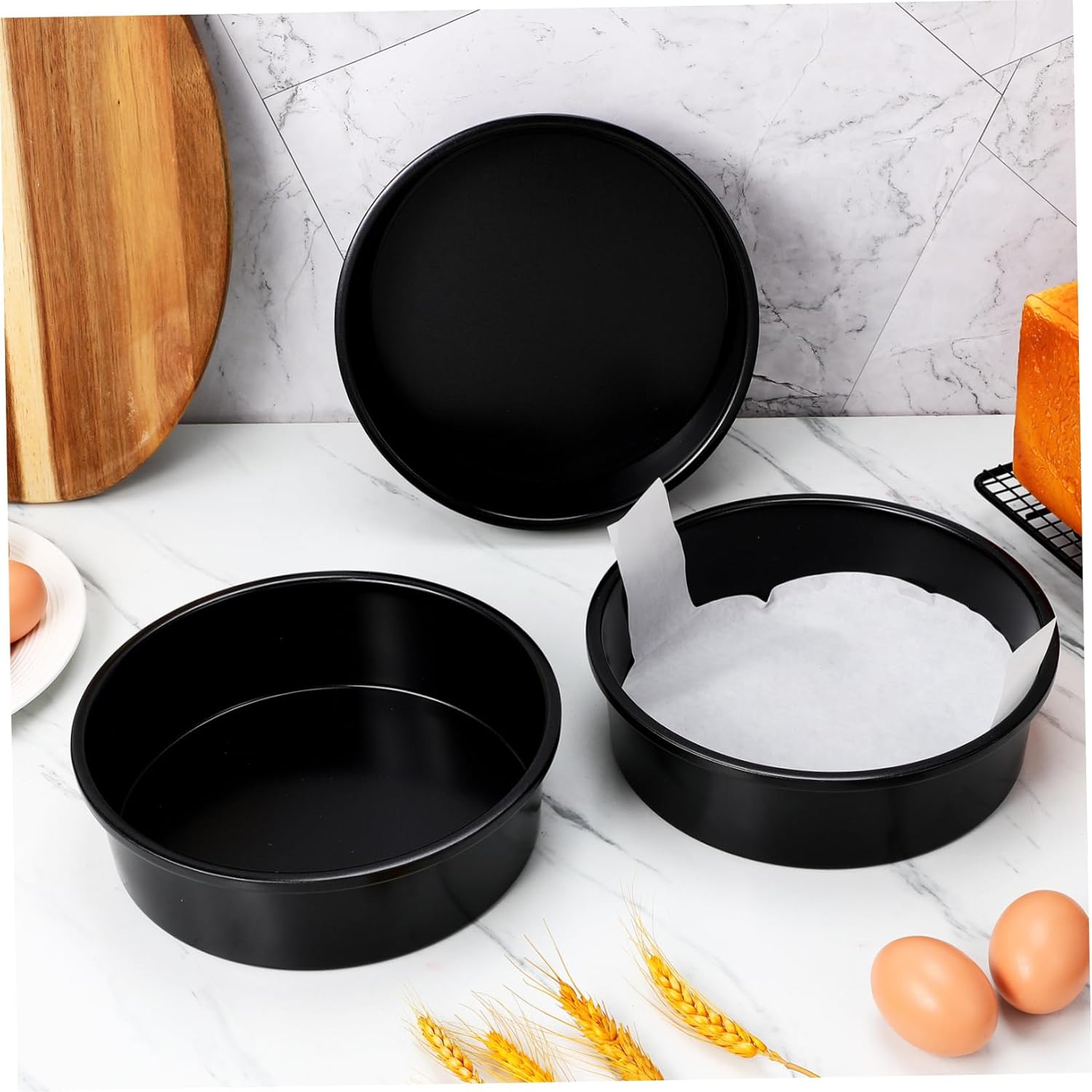 Package Include 3 x cake pans(8inch) 100 x parchment paper(8inch) Features -Abundant options: The cake pan and parchment paper set offers a wide range of quantities, making it suitable for bakery or large party use cookie liners for baking -Various cakes: the round cake pans accommodate various cake recipes, making them ideal for everything from birthday cakes to wedding cakes air fryer paper -Color:Black baking supplies -Size:22.00X22.00X6.20cm/8.65X8.65X2.44in parchment paper for cheese -Effortless cake release: with smooth surface and parchment papers included, you can easily remove cakes from the pans without any sticking baking supplies for home bakers -Material:Carbon steel, paper wedding cake pans -Versatile baking tool: these cake pans are not just for cakes; they are also ideal for baking other desserts and pastries in your home round baking pans for cakes -Metal construction: crafted from carbon steel, these baking pans are built to withstand frequent use, providing reliability baking parchment paperGoods Informationmacaron parchment paper Whether you're baking for a special occasion or everyday treats, this set is a must-have for any kitchen.baking parchment paper The included parchment paper fits properly, preventing sticking and ensuring easy cleanup.cake pan parchment liners Crafted from metal materials, these round cake pans are designed to withstand high temperatures and frequent use