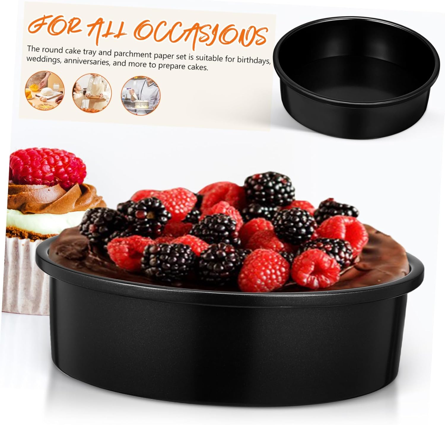 Package List 3 x cake pans(8inch) 100 x parchment paper(8inch) Features -Size:22.00X22.00X6.20cm/8.65X8.65X2.44in macaron parchment paper -Metal construction: crafted from carbon steel, these baking pans are built to withstand frequent use, providing reliability parchment paper for cheese -Various cakes: the round cake pans accommodate various cake recipes, making them ideal for everything from birthday cakes to wedding cakes cake pan parchment liners -Versatile baking tool: these cake pans are not just for cakes; they are also ideal for baking other desserts and pastries in your home baking supplies for home bakers -Material:Carbon steel, paper round baking pan -Abundant options: The cake pan and parchment paper set offers a wide range of quantities, making it suitable for bakery or large party use cake liners for baking -Effortless cake release: with smooth surface and parchment papers included, you can easily remove cakes from the pans without any sticking cookie liners for baking -Color:Black air fryer parchment paperGoods Descriptionbaking supplies for home bakers Whether you're baking for a special occasion or everyday treats, this set is a must-have for any kitchen.baking parchment paper The included parchment paper fits properly, preventing sticking and ensuring easy cleanup.cake pan parchment liners Crafted from metal materials, these round cake pans are designed to withstand high temperatures and frequent use