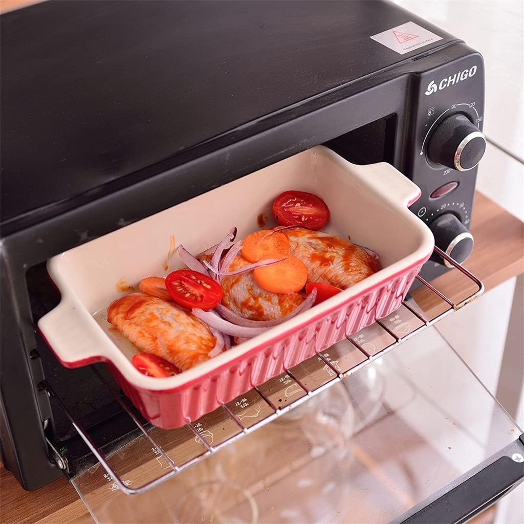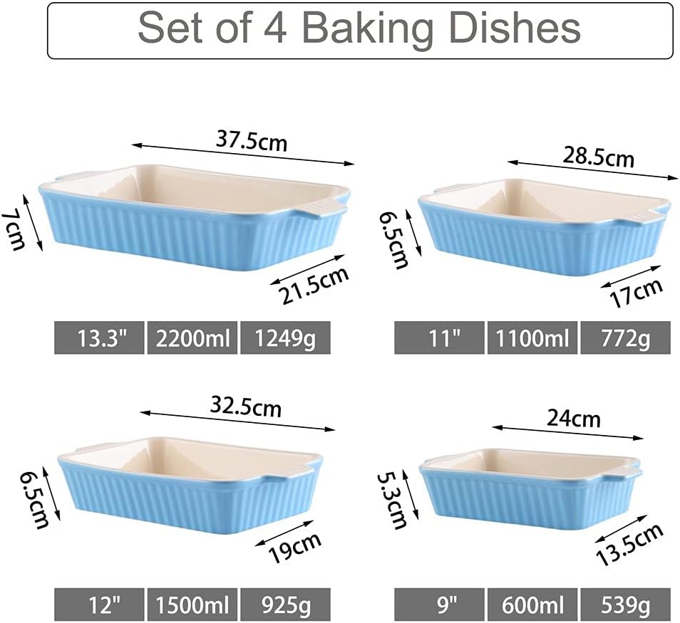 Specification: Dimension:9" Bakeware PansL*W*H: 24*13.5*5.3 cm Weight: 539g 11" Bakeware PansL*W*H: 28.5*17*6.5 cm Weight: 772g 12" Bakeware PansL*W*H: 32.5*19*6.5cm Weight: 925g 13.3" Bakeware PansL*W*H: 37.5*21.5*7cm Weight: 1249g Color: Blue/Red/Green/Orange/Grey Features: - And Versatile Baking Dish For Lasagna, Cakes, Casseroles And Quiche, Roasting And Serving Veggies, And More Impermeable Lead-Free Glaze Won'T Craze, Stain Or Absorb Odors And Cleans Up Like Non-Stick - Safe In Dishwasher, Freezer, Microwave And Oven Including Under The Broiler Or On Stovetop With A Diffuser, Great For Storing And Reheating Leftovers - Generous Depth Supports Layered Recipes; Easy-Hold Handles For Comfortable Grip And Secure Transfer Into And Out Of The Oven And Under The Broiler - Porcelain Enameled Exterior Complements Any Kitchen DéCor And Cast Iron Contraction Retains Heat Well. Interior Does Not Alter Flavors Or Absorb Odor Package included: 1x 9" Bakeware Pans 1x 11" Bakeware Pans 1x 12" Bakeware Pans 1x 13.3" Bakeware Pans
