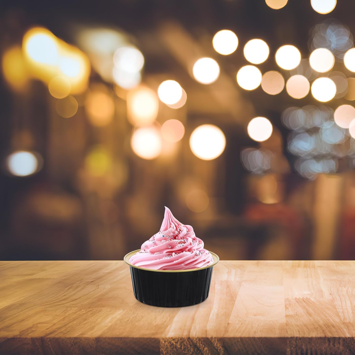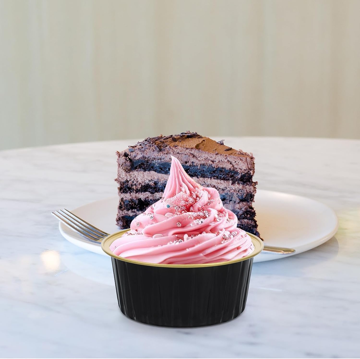 Package Include 100 x cake tin cup Features -Convenient lid design: the included lids make these cups easy to carry and store, ensuring your baked goods stay fresh and intact foil muffin tins with lids. -Size:8.40X8.40X6.00cm/3.30X3.30X2.36in -Material:Aluminum foil, plastic -Product Info:Cake tin foil cup -Versatile applications: ideal for baking mini bread, mini brownies, puddings, and more, these cups are great for a variety of delicious treats mini ramekins. -Enhanced aesthetic appeal: the sleek design of these cups adds a touch of elegance to your baked creations, making them look even more appetizing baking tins with lids. -High temperature resistance: these round aluminum foil cups can withstand high temperatures, making them great for use in ovens and microwaves. note that the plastic lids are not heatresistant aluminum cupcake pans. -great for gatherings: suitable for family gatherings, parties, celebrations, and other events, these cups are a practical and stylish choice for any occasion ice cream cups -Color:BlackGoods Descriptionmini ramekins The 125ml capacity is just right for individual servings, making it a convenient choice for parties and gatherings.baking tins with lids The included lid that your creations stay fresh and can be easily transported.individual cupcake containers Made from high-temperature resistant aluminum foil, it is ideal for making puddings, snow skin mooncakes, and other baked goods.disposable cupcake liners The round foil cup with lid is great for baking and serving a variety of desserts