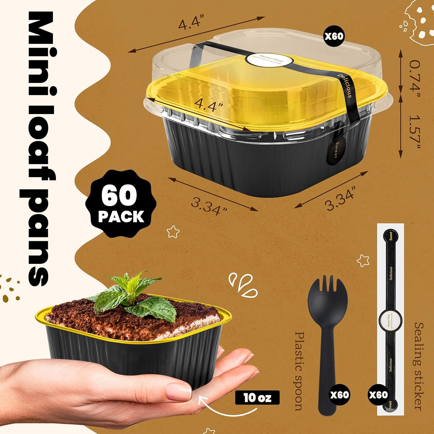 NPLUX Bundle of 3.5 oz Heart Shaped Cake Pans with Lids and 60 Pack Mini Cake Pans with Lids for Valentine's, Party, Wedding Dessert