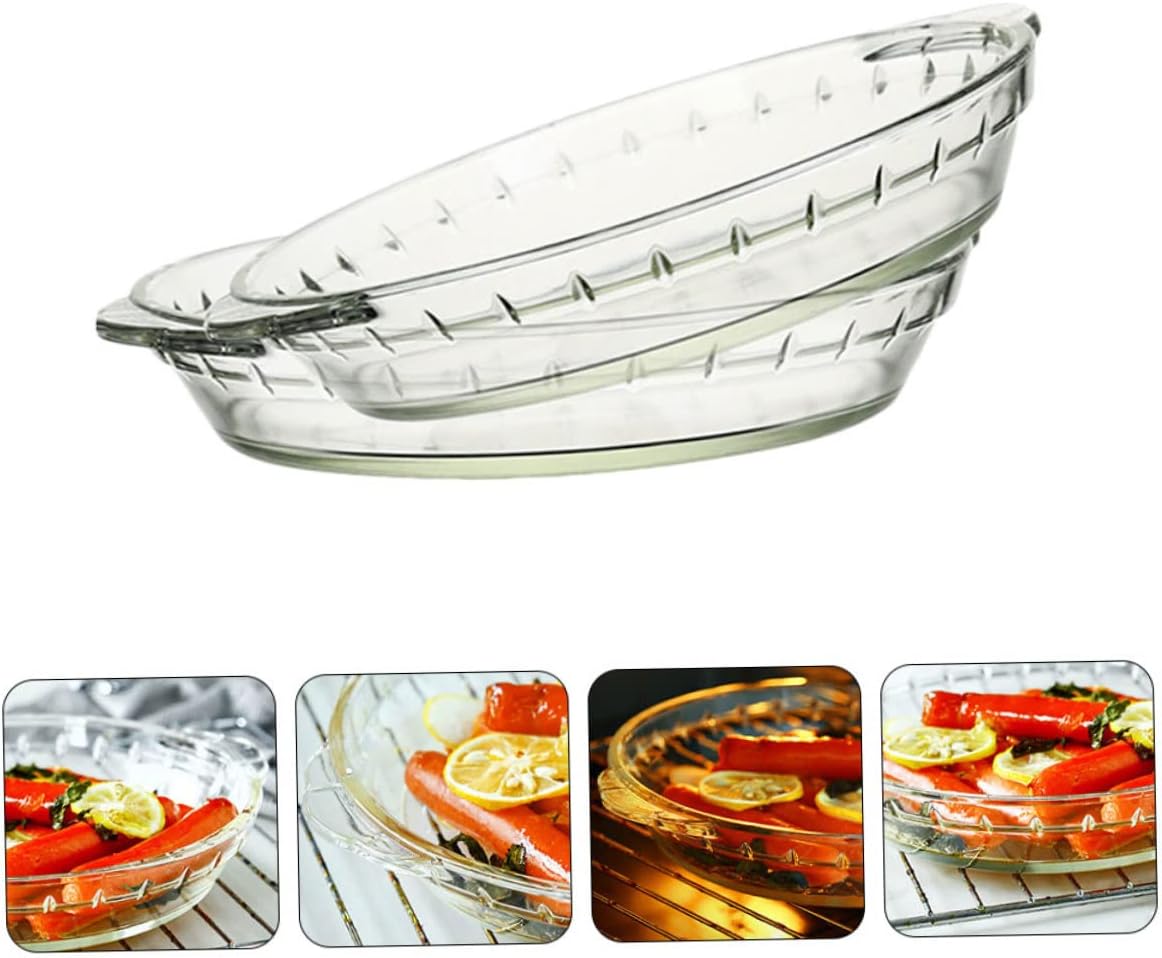 Package Include 2 x Glass Trays Characteristics -Color:Transparent Baked Rice Dish -Size L: 28.5X25.5X4.3cm/11.22X10.04X1.69in, 1330ml(Capacity) Cooking Dish. -Size S: 25.5X22.5X4.3cm/10.04X8.86X1.69in, 1030ml(Capacity) Heat-resistant Dish. -Material: Glass Microwave Grill Plate - The temperature can withstand -20 degrees -300 degrees. Will not soften and deform under high temperature Microwave Baking Tray. - Stable and reliable material, natural impermeability, , easy to clean Grilling Fish Tray. - Clear and bright, beautiful and generous, kitchen baking tool Baking Tray. - One-piece molding technology, no joints, smoother surface, no scratching, beautiful and Grill - and , sturdy and , you can safely heat food in the microwave or Storage Tray.Goods InformationGlass Tableware Anti-scalding with handle, easy to move and hold, convenient to use.Food Storage Tray A professional microwave or oven baking tray.Grill Plate This item is made from high-end tempered glass material which is and .Housewarming present and stable tempered glass material, not easy to deform and melt