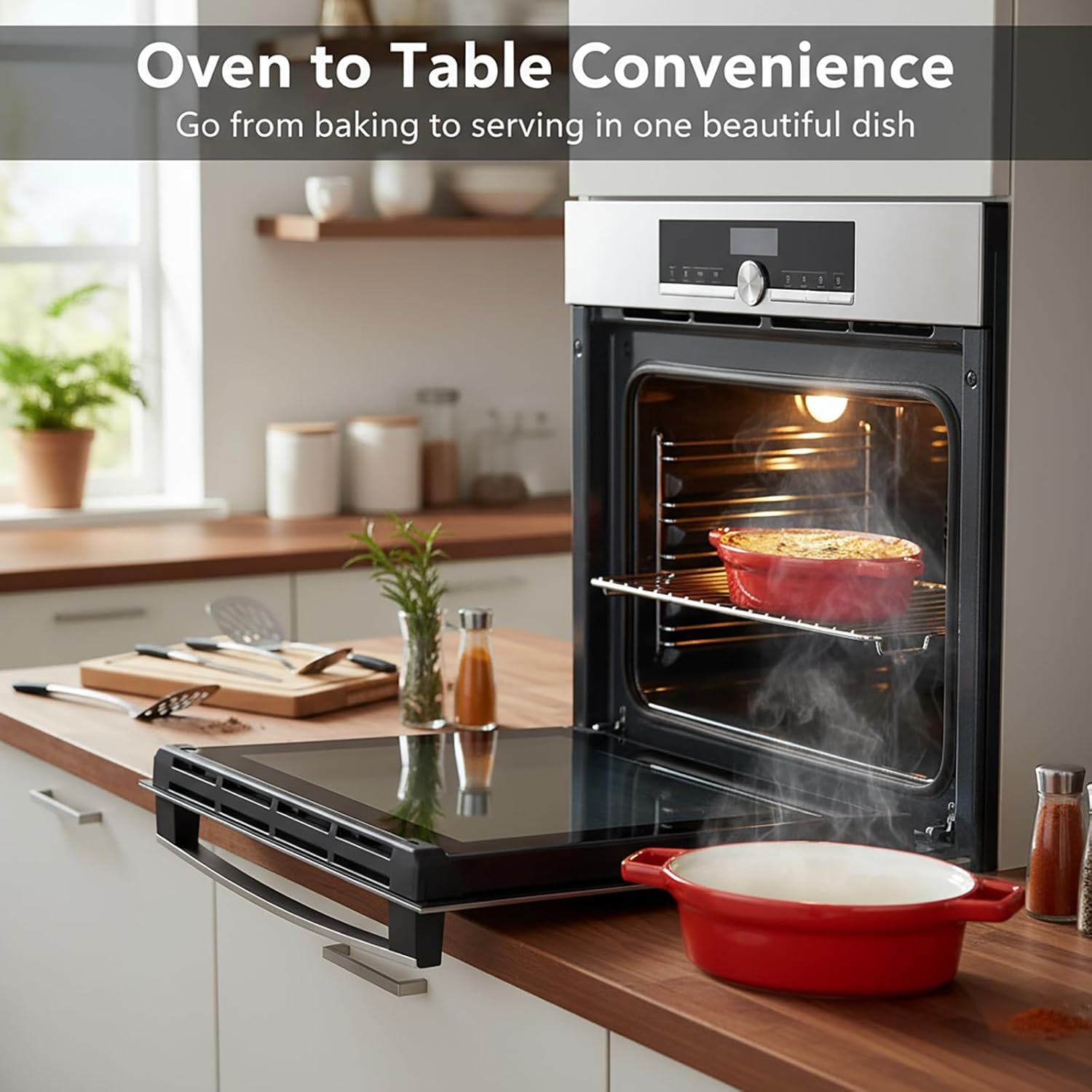 Multipurpose Baking Dish Set: Our 6” x 5”, 9.1 Inch With Handles, 15.3 OZ / 450 ml, Ceramic personal baking dish pans are ideal for all your favorite foods including au gratin potatoes or cauliflower, casseroles, brie cheese appetizers, pasta, lasagna pan, banana split, pot pies, cobbler. High quality Ceramic: These small baking dishes are crafted with high-quality ceramic which makes it both oven and microwave safe 482 F°. It’s also chip and flake resistant, dishwasher safe, and comes in a Smooth wear-resistant glaze finish to match every kitchen. Non-Stick and Heat Resistant: Offering a better cooking and baking experience than cast iron pans our Oval baking dishes set is non-stick to make it easier to cook and remove food for better taste and overall food quality when you’re finished. Convenient Carry Handles: Oval mini casserole dishes feature small handles to make them easier to grab, so you can safely carry them for serving guests. These single serve baking dishes are great for baked mac n cheese. Thoughtful Housewarming Gift: Everyone can use reusable cooking and baking pans in their kitchen which makes our individual oval baking dishes perfect as holiday, Christmas, or even housewarming gifts to friends, family, or new neighbors。