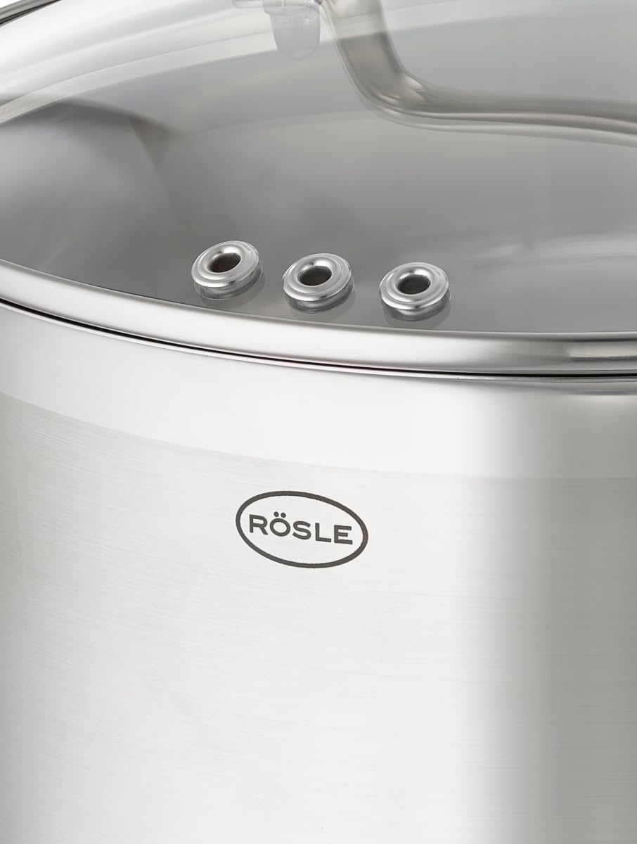 The Rosle High Casserole 16 cm charm stands out with its ergonomic handle design and timeless elegance. Moreover, it provides all essentials needed for basic kitchen cookware in its entry-level series.