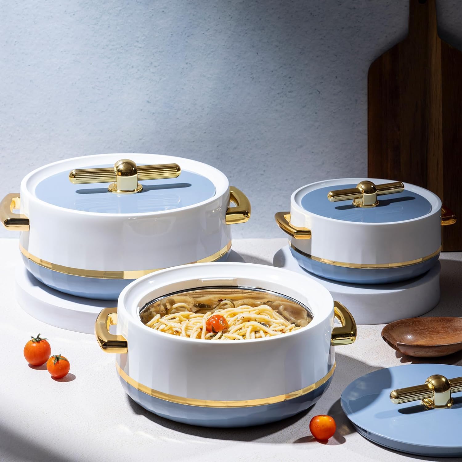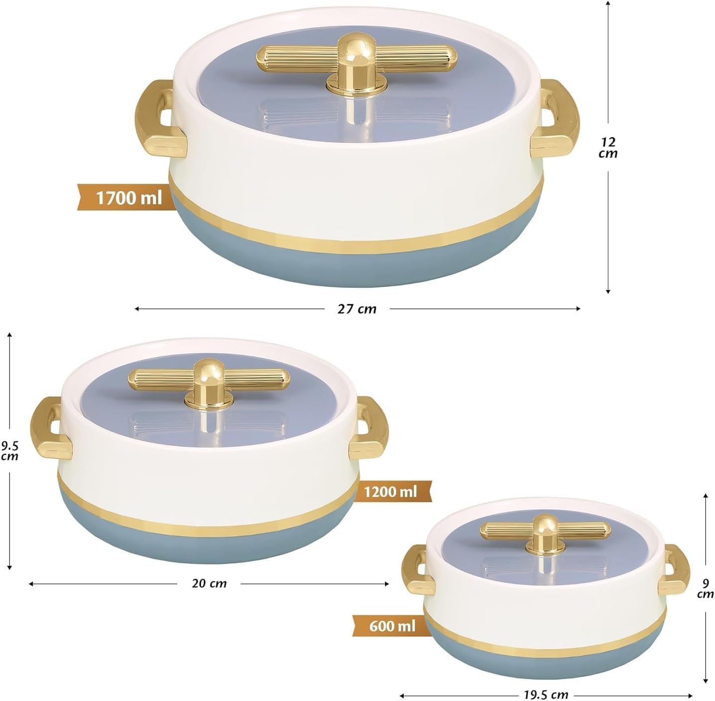 Casserole Set Of 3 Lid & Handle| Keeps Food Hot & Fresh For Long Hours| Suitable For Chapati, Roti, Biryani, And More (1700ml, 1200ml, 600ml) Royal Stone Blue