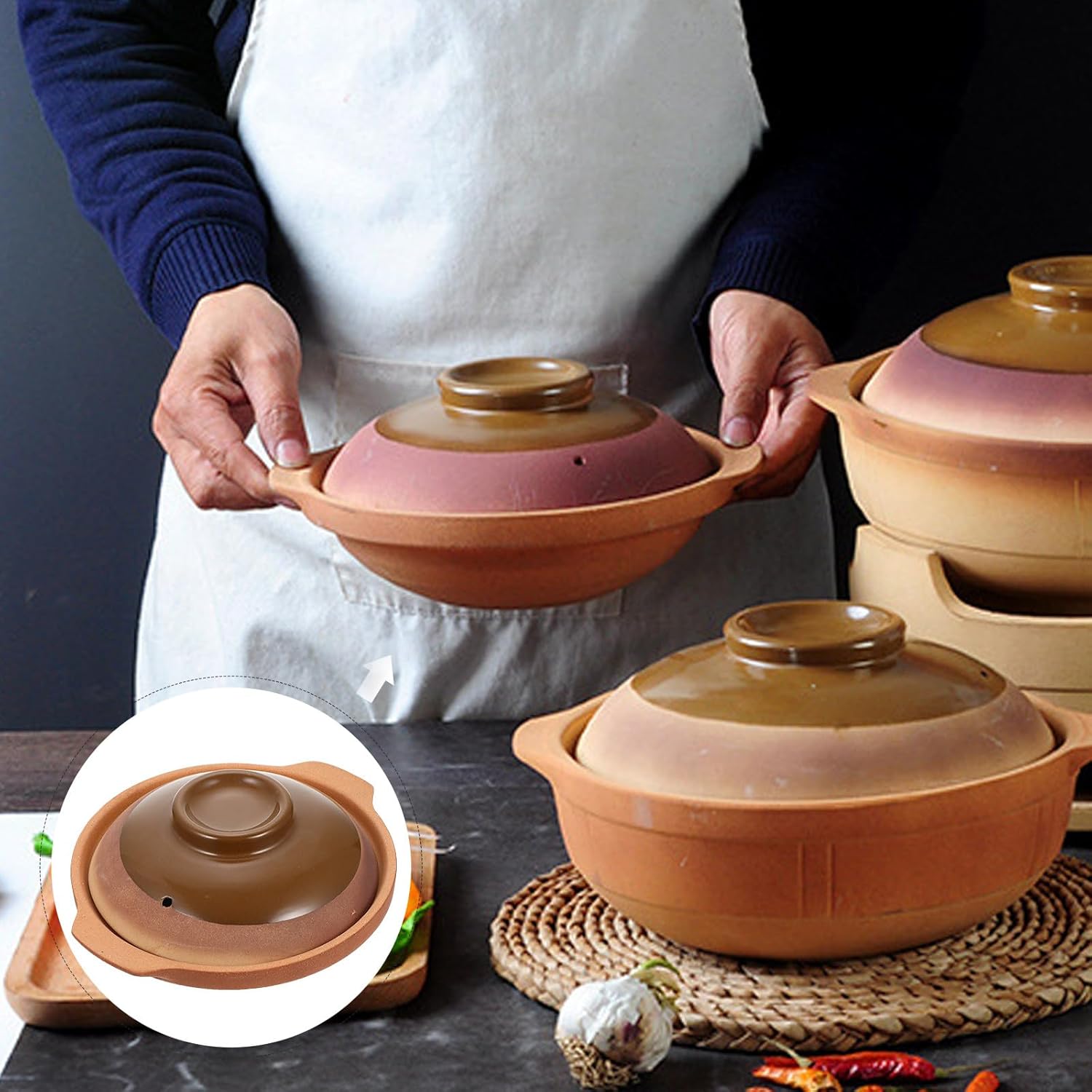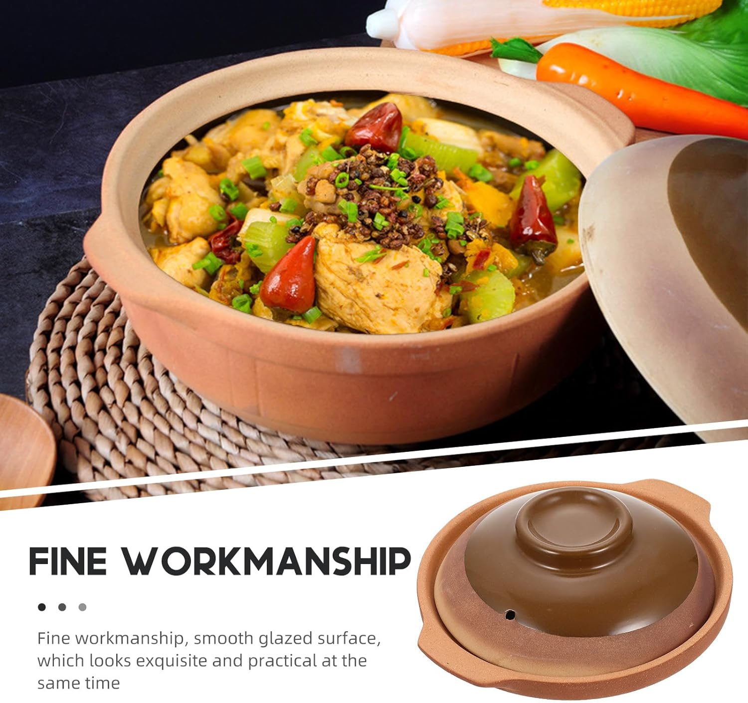 Package List 1 x set of Casserole Characteristics - Size: 24.00X24.00X6.00cm/9.43X9.43X2.36in -Product Info:Clay pot rice noodles - Color: As shown - Material: Ceramics - Bottom energy gathering heating, and , save gas Kitchen Supplies. - The double handle for easier and more convenient to move. The design is smooth and does not hurt the hand for safe using and cooking Kitchen Stew Pot. - Good texture, perfect details, which can bring you a good experience Cooking Pot. - Under high temperature, it will not soften and deform. Stable material, , easy to clean. - With it, you can eat delicious braised chicken rice, soup rice, bibimbap and other food Home Stew Pot.Goods InformationKitchen Cooking Pot Flat base is good for cooking quickly, convenient and easy to use.Kitchen Casserole It is designed for cooking foods like soup, oatmeal etc.Cooking Pot Smooth surface with simple design, suitable for home and restaurant using.Ceramic Kitchenware The cooking pot is manufactured of ceramic material