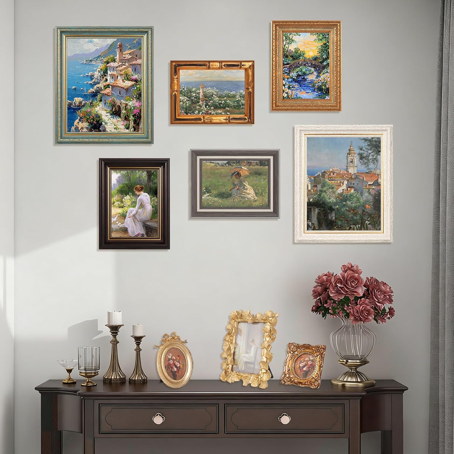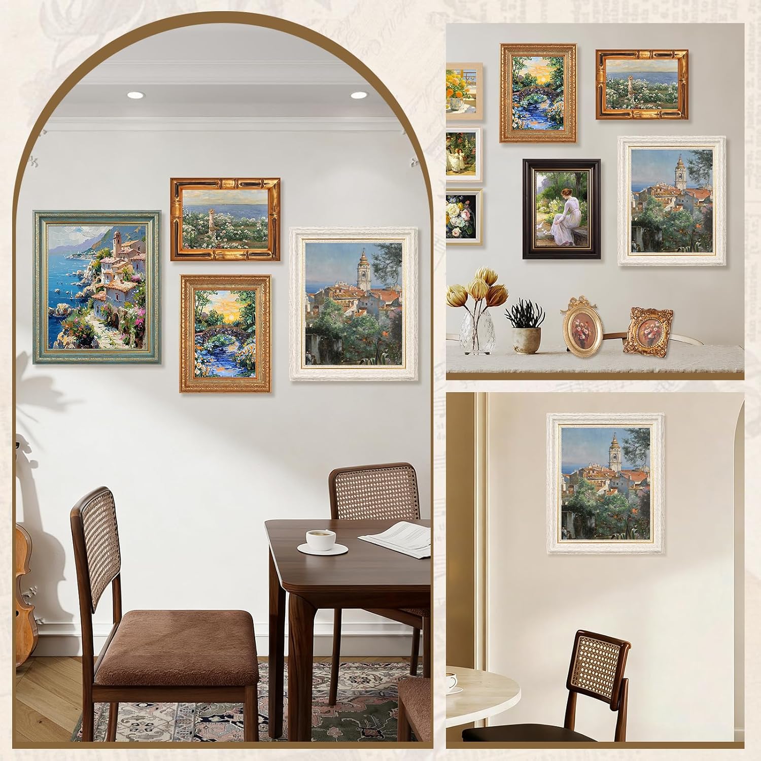 Features: This set of 15 vintage French farmhouse picture frame set offers versatile Picture Frame with various sizes, wall hooks, and tabletop stands. Made from durable materials with glass covers, they protect and showcase your photos beautifully. Perfect for decorating bedrooms, living rooms, offices, or galleries, these elegant frames add timeless charm and easy style to any space. Specifications: Material: Resin, Wood, Plastic Color: Bronze,Gold, Brown, White Size:Inner frame size ranges from 10 X 8inches to 3x 2 inches Package includes: 15 × Vintage Picture Frame Notes: For manual measurement, please allow slight errors in size. The color may have a slight difference due to different screen displays.