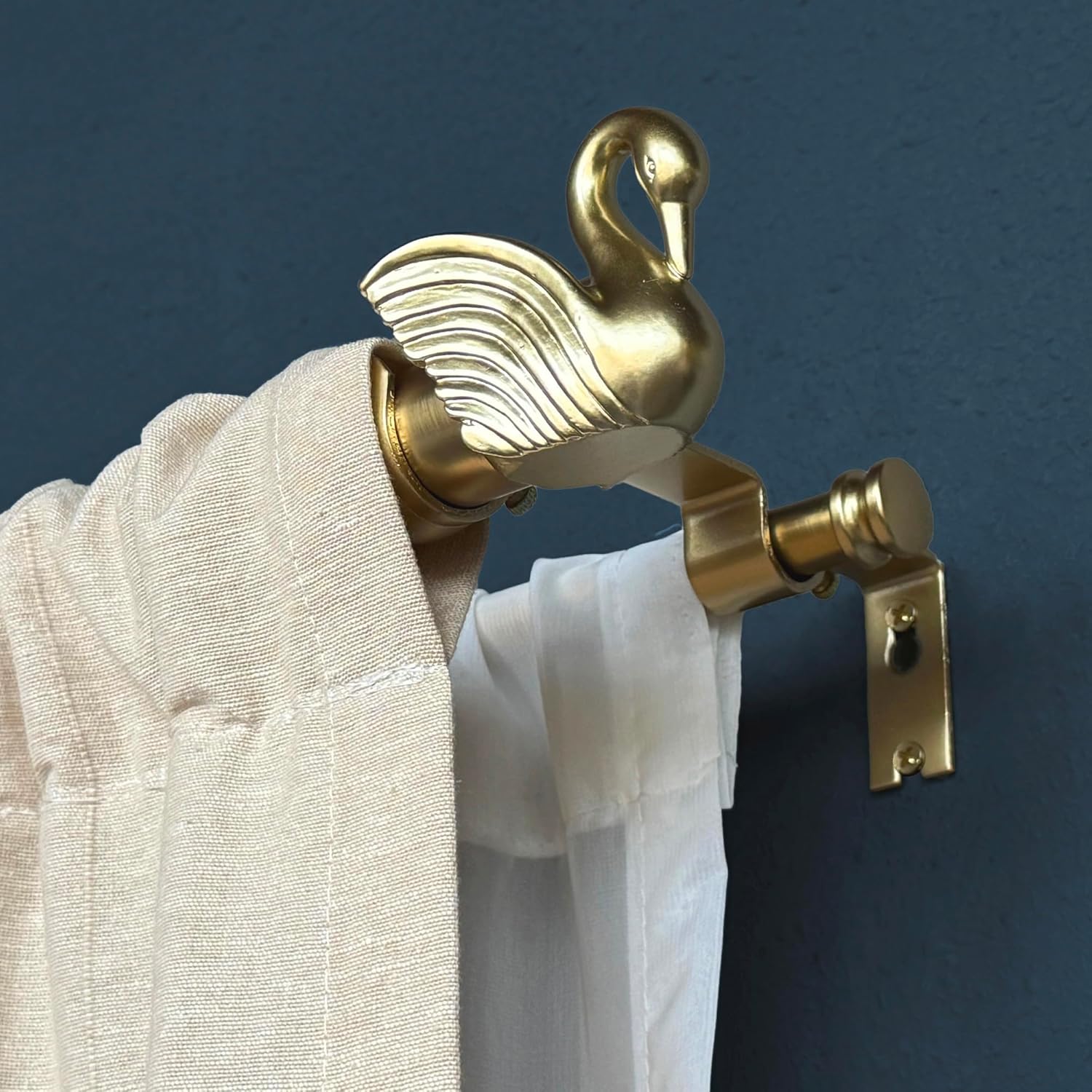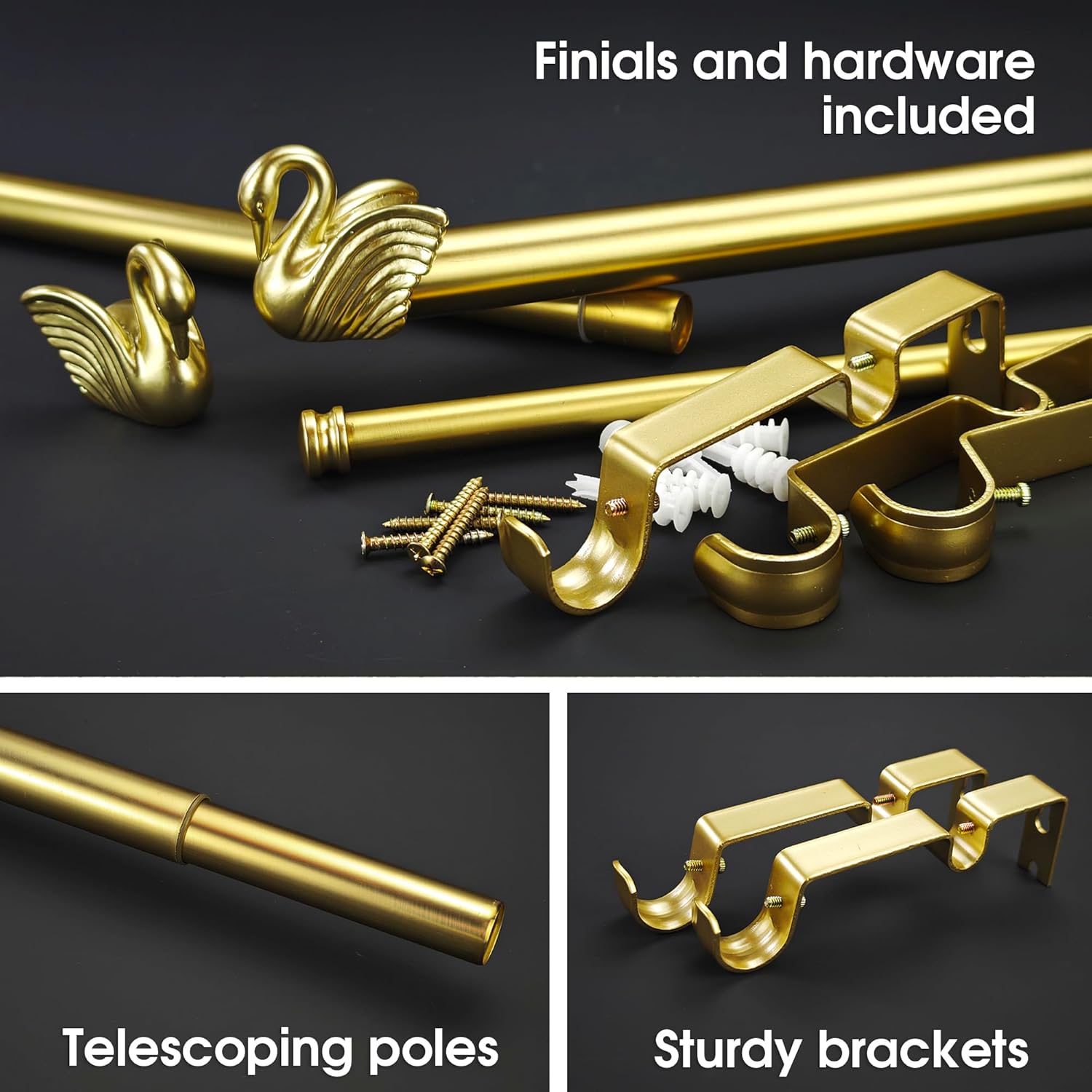 ILAISIHOME 1-1/8 Inch Diameter Curtain Rods with Swan Finial, Telescoping Double Curtain Rods for window