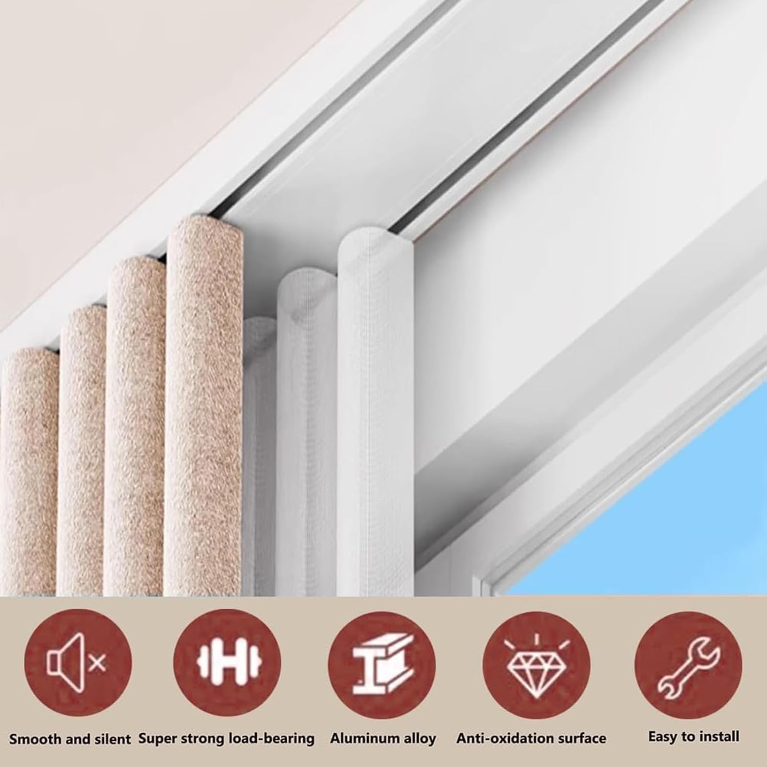 Transform your space into stunning focal points with our premium aluminum alloy double curtain rails. Crafted for durability and elegance, these heavy-duty curtain tracks are ideal for enhancing any room in your home or office. Imagine the versatility they offer: whether you want to hang sheer curtains to let in natural light or heavier drapes for privacy and insulation, our tracks accommodate both effortlessly. The smooth gliding system ensures that your curtains open and close with ease, making it simple to adjust your lighting and ambiance throughout the day. Designed to blend seamlessly with various interior styles, these curtain rails not only support your curtains but also add a modern touch to your decor. Their sleek finish complements any color scheme, allowing you to create a cohesive look in your living room, bedroom, or dining area. Our double curtain tracks provide the flexibility to layer your window treatments, giving you the ability to mix and match styles for a personalized touch. Installation is straightforward, and with the included hardware, you can quickly transform your windows without the need for professional help.