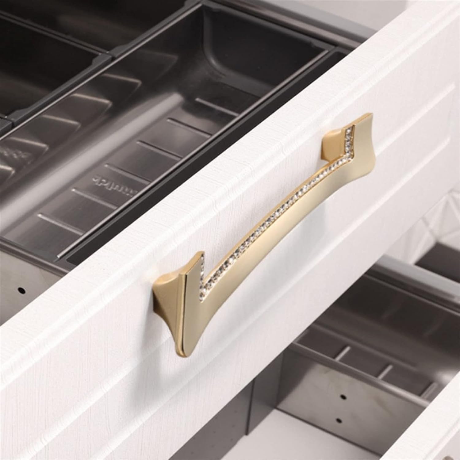 Drawer Handles & PullsCrystal Cabinet Door Handles Furnitures Cupboard Wardrobe Drawer Dresser Hidden Pull Furniture Hardware 1PcsHigh quality and not fade not RustMaterial: Zinc Alloy+ CrystalColor: Gold, Bright chromeHole Distance: 32mm/96mm/128mmApplied: Cabinet Drawer Knobs, Cabinet Handles, Dresser Pulls, Furniture HandleNote: Due to the difference between different monitors, the picture may not reflect the actual color of the item. We guarantee the style is the same as shown in the pictures. Thank you for your understanding