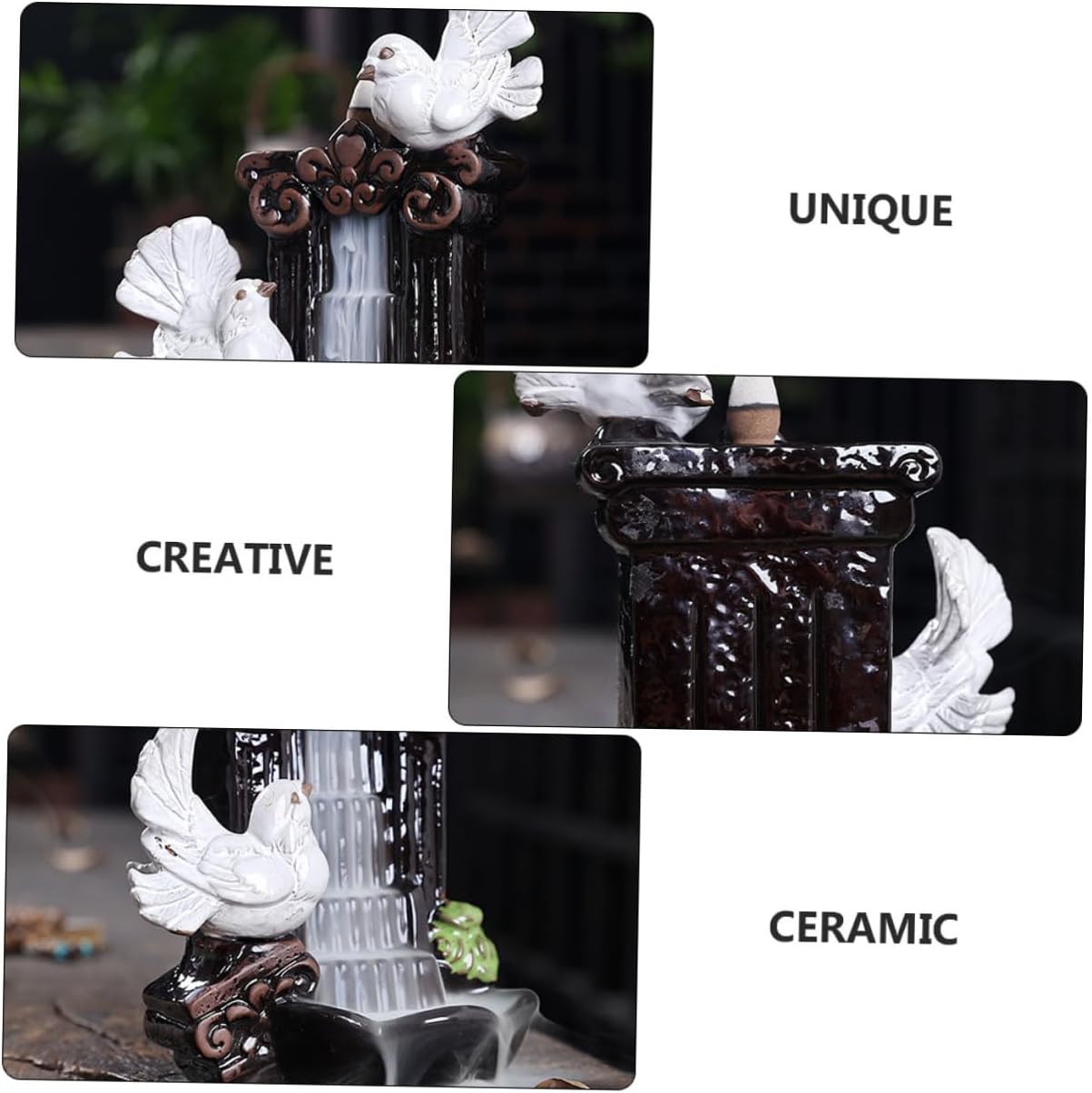 Package List 1 x incense burner 20 x aroma Features -Product Info:Ceramic pigeon ornaments -Color:Multi -Material: Ceramic -Size: About 18.00X13.50X9.00cm/7.07X5.31X3.54inch - Features the rational size, without taking up too much on your home or office desktop. - Put incense on the upper part, the will flow down like water, very decorative. Antique craftsmanship Censer Ornaments. - The aromatherapy furnace is made of good material, which is and practical for the use. - The incense burner is not only a practical aromatherapy furnace, but also an desktop ornament desk decor. - Perfect for bedroom, study, office, sauna room, etc. It will make the room full of art atmosphere table decor.Goods InformationCenser Adornment This is an aroma burner, selected , sturdy and practical.office decor It is suitable for many scenes, such as bedroom, living room, dining room, study, office, etc.trays for decor It's made with excellent workmanship, looking and awesome