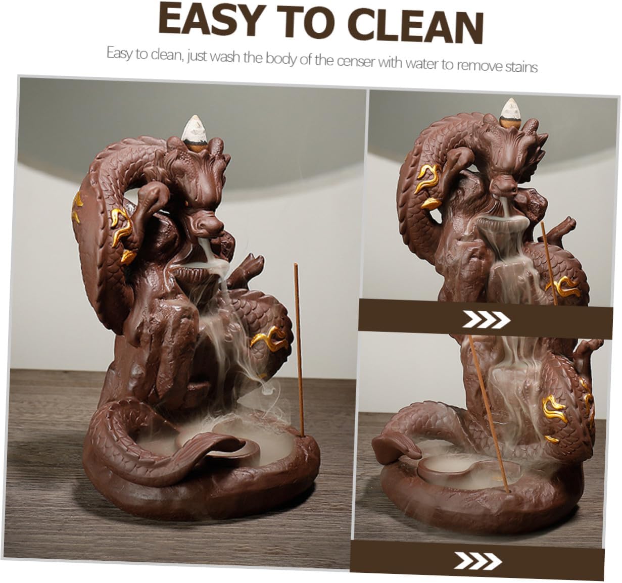 Package List 1 x Backflow Incense Burner Characteristics -Color: Brown -Product Info:incense burner -Size: About 18.50X14.00X12.00cm/7.27X5.50X4.72in -Material: Purple Sands - It is perfect for the indoor use, such as home, office, salon, etc., which is practical and reliable Purple Sand Incense Burner. - Unique and dragon design, full of art and cultural atmosphere, which is creative and unique Desktop Backflow Censer. - Wild range of application. Suitable for homes, offices, tearooms, yoga rooms and other places Backflow Incense Burner. - The perfect gift for friends or families who like incense, they will like the censer adorn Incense Holder Home Adornment. - It has strong practicability and has the effect of calming and sleeping, practical and decorative at the same time Purple Sand Craft Decor.Goods InformationDragon Backflow Incense Burner Suitable for families, bedrooms, meditation rooms , etc.Purple Sand Censer Are you looking for an incense burner that is both beautiful and practical? Then you miss our products, workmanship, high grade and design.Purple Sand Craft Decor Is