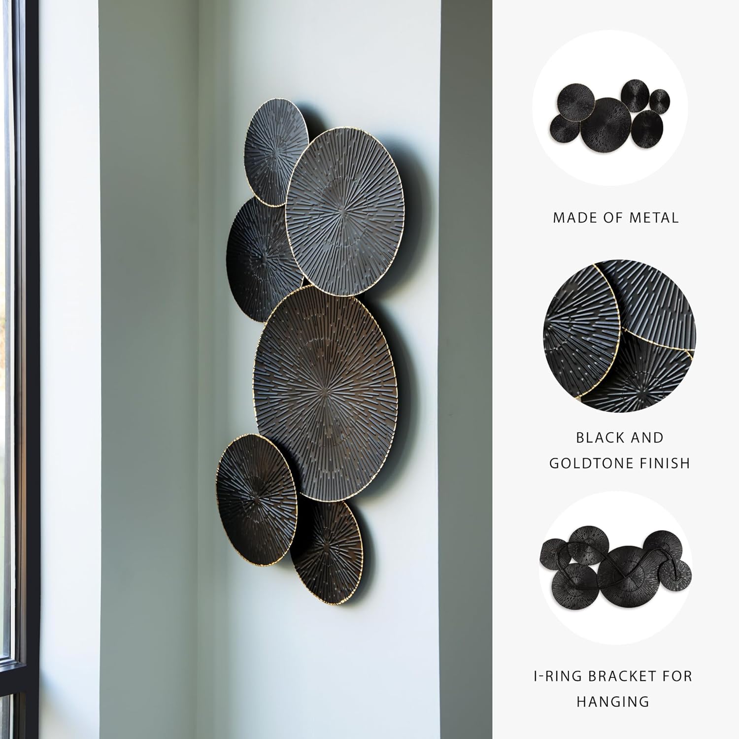 With refined craftsmanship and metal art, this wall sculpture is long lasting and timeless. The perfect combination of workmanship and aesthetics, its geometric design in a black and goldtone finish is sure to make a statement.
