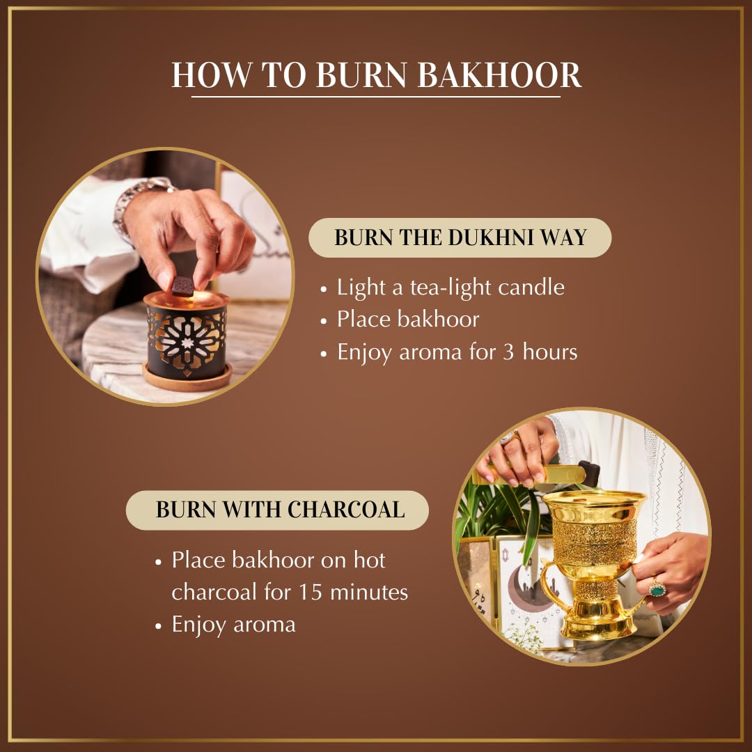 Dukhni Arabic Oud Bakhoor Incense is rich, luxurious and long lasting to keep your home smelling wonderful for hours. Dukhni's signature burner makes bakhoor easy to use. It is smokeless and non toxic making it safer to use everyday and around kids and pets too. Dukhni produces high-quality, pure Arabic Attar Oils using the finest quality ingredients. The oil blends are long lasting and crafted to create unique and evocative arabic scents, perfect for gifting or personal use