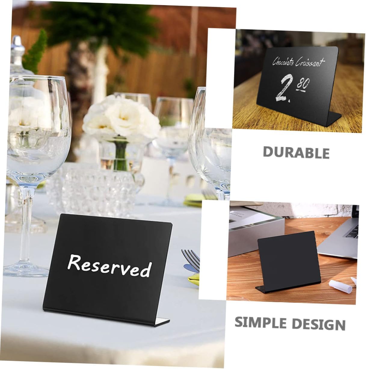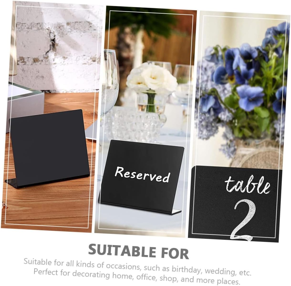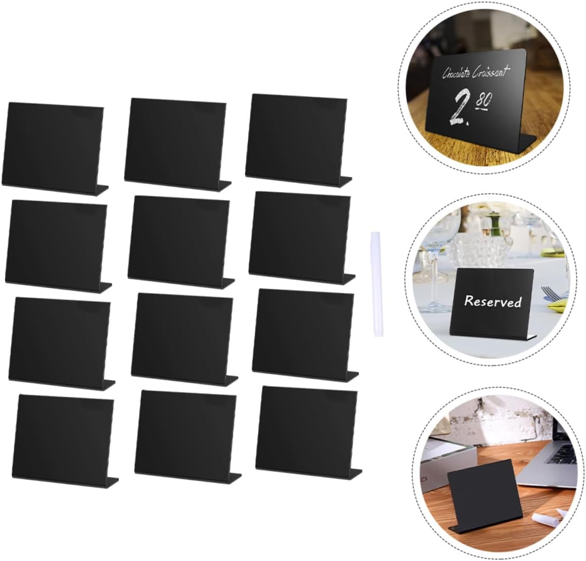 Package List 12 x boards 1 Characteristics -Material: Acrylic. -Product Info:Desktop display blackboard -The product has acrylic material and creative dual-side design and appearance. -Suitable for graffiti painting and writing notice, do not disturb, welcome, business, rest, etc party display sign. -Perfect size for put on the tabletop. for rooms, bedrooms, meeting rooms, offices, kitchen, restaurant and more! -Manufactured with premium acrylic material, and practical enough to use. -The product can be given as a good to your friends, which makes them feel happy all the time display board.Goods Descriptionparty table decorations You can also write down the point information on the blackboard to remind yourself something important or leave a message to your family, colleagues and roommates.message tabletop board The small blackboard is erasable and reusable, can be used repeatedly after wiping with an eraser.black board sign The mini chalkboard makes it easy for you to share messages with your guests in style
