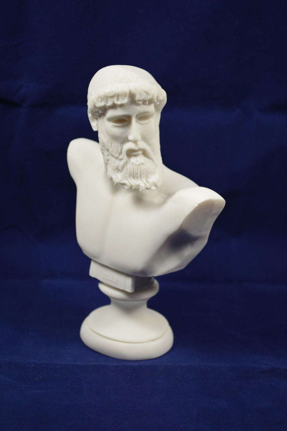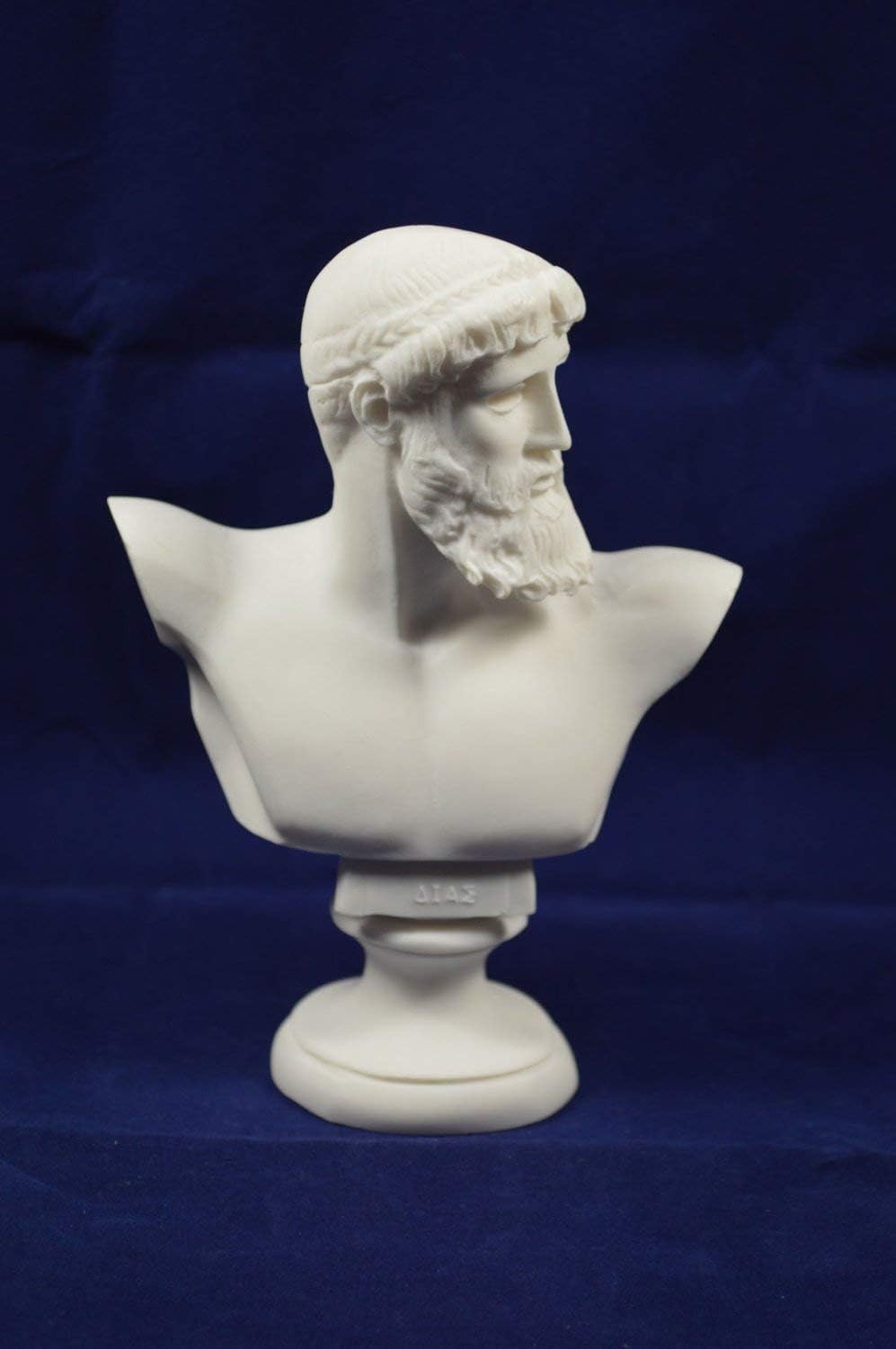 Zeus was the sky and thunder god in ancient Greek religion, who ruled as king of the gods of Mount Olympus. Zeus is the child of Cronus and Rhea, the youngest of his siblings to be born, though sometimes reckoned the eldest as the others required disgorging from Cronus's stomach. In most traditions, he is married to Hera, by whom he is usually said to have fathered Ares, Hebe, and Hephaestus. Zeus was also infamous for his erotic escapades. These resulted in many godly and heroic offspring, including Athena, Apollo, Artemis, Hermes, Persephone, Dionysus, Perseus, Heracles, Helen of Troy, Minos, and the Muses.( Ko3 144) Details: Condition: New, reproduction handmade in Greece. Approximately Height: 16cm - 6.2 inches Width: 12cm - 4.7 inches Weight: 420g Material: Alabaster