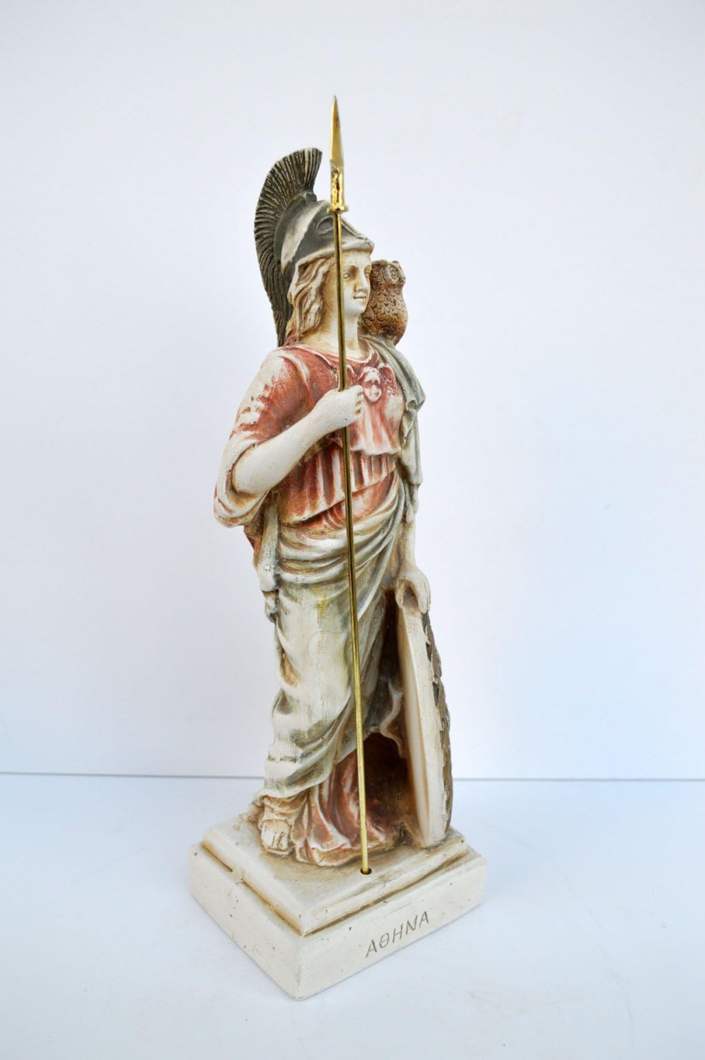In Greek religion and mythology, Athena or Athene, also referred to as Pallas Athena/Athene (pron.: Παλλὰς Ἀθηνᾶ; Παλλὰς Ἀθήνη), is the Goddess of wisdom, courage, inspiration, civilization, law and justice, just warfare, mathematics, strength, strategy, the arts, crafts, and skill. Protector of the city athens! This sculpture is made of casting stone! Tracking number provided!!! Details: Condition: New, made in Greece. Approximately Height: 32cm - 12.5 inches Width: 10cm - 4 inches Depth: 8cm - 3 inches Weight: 1250 g Please be aware that, due to the fact that our products are either individually cast, carved, hand painted and hand finished, there will inevitably be minor variations in size, colour and texture.