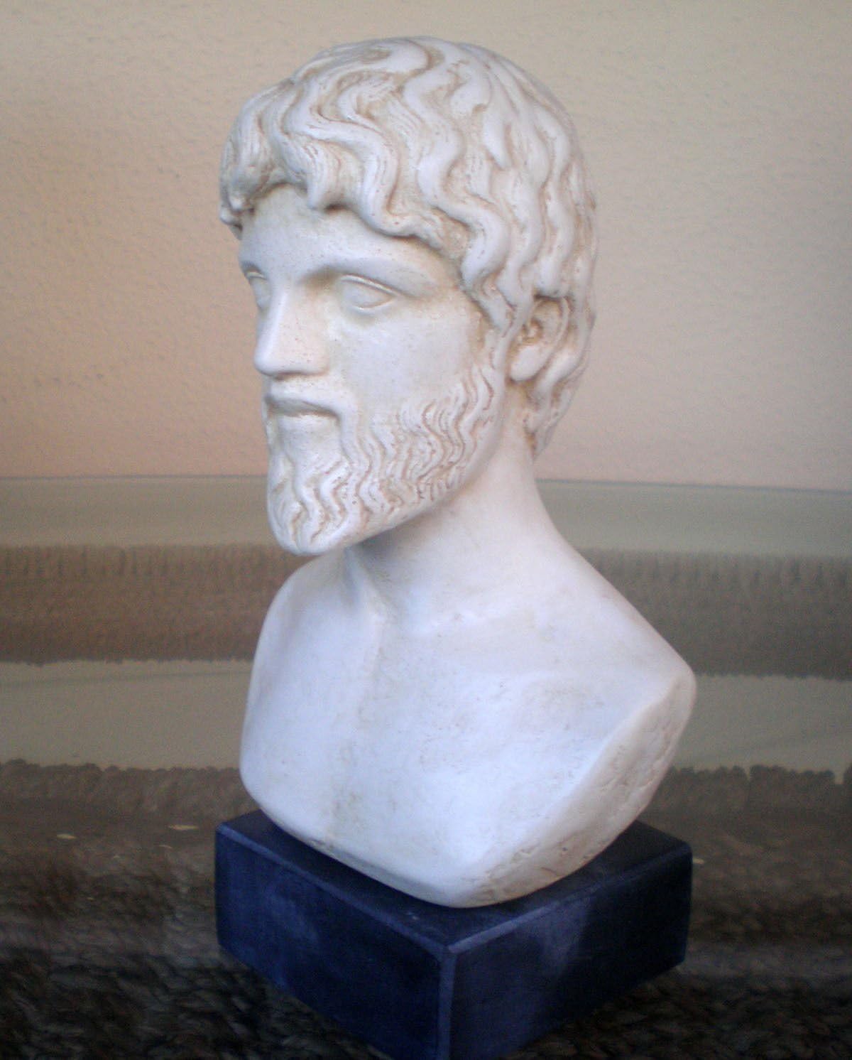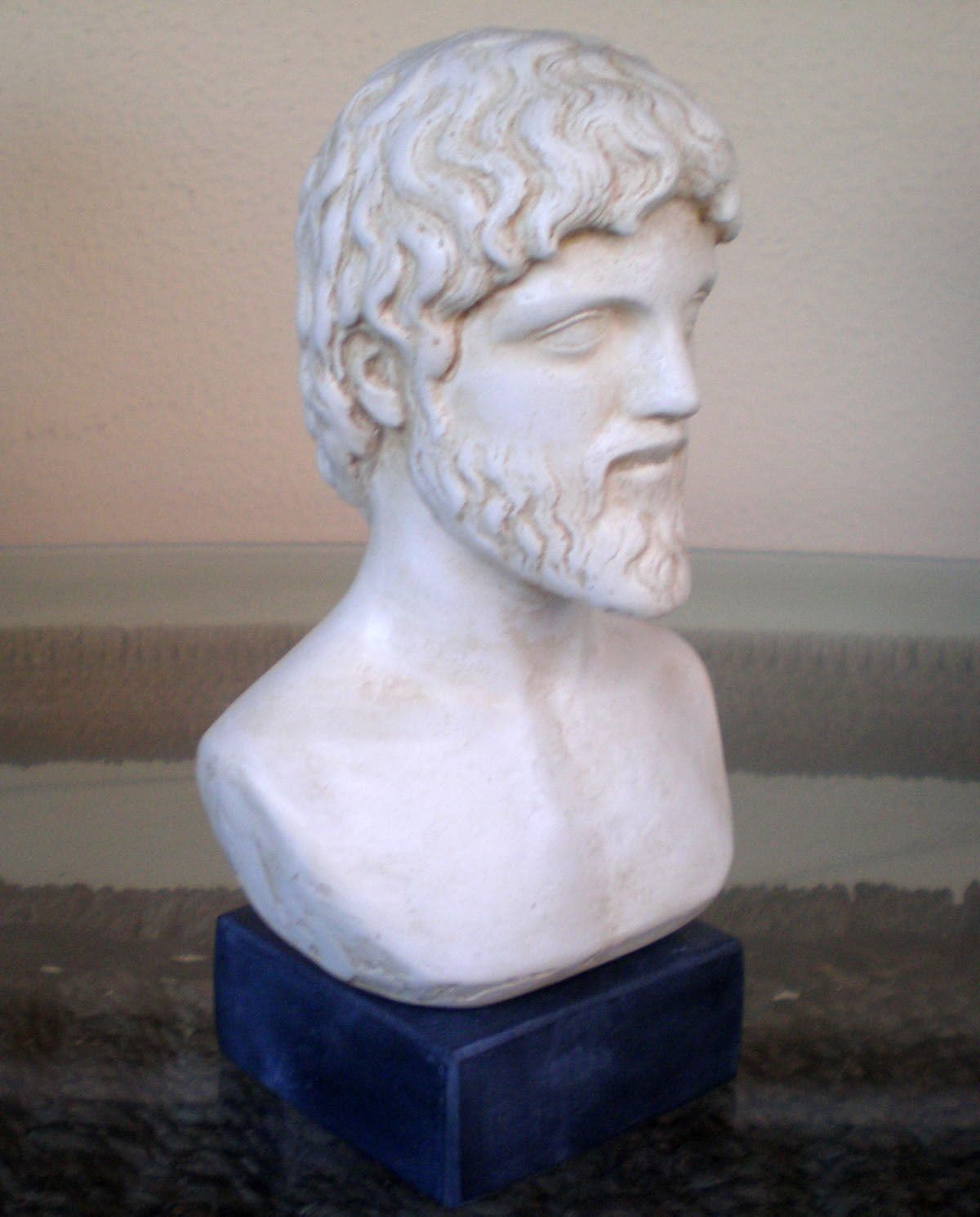 Aristotle is a towering figure in ancient Greek philosophy, making contributions to logic, metaphysics, mathematics, physics, biology, botany, ethics, politics, agriculture, medicine, dance and theatre. He was a student of Plato who in turn studied under Socrates. He was more empirically-minded than Plato or Socrates and is famous for rejecting Plato's theory of forms.Height: 18 cm(7") Width: 10 cm(3.9") Weight: 1.2 kg(01-138)