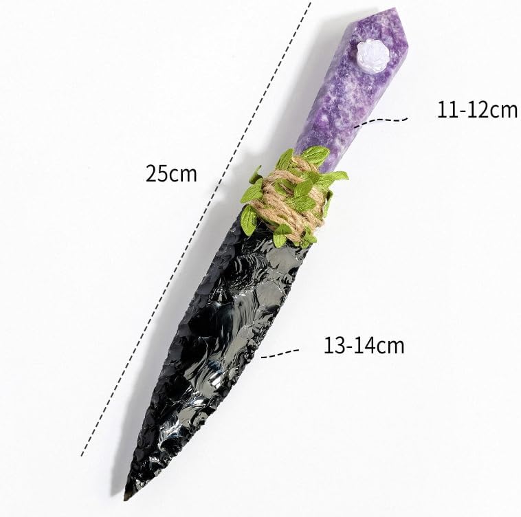 This obsidian blade-inspired desk ornament features a sleek, polished form with refined hand-carved details that highlight its striking shape while remaining completely unsharpened for safe display. Measuring approximately 25 cm in length and weighing around 140–170 g, it offers a substantial presence without being overly heavy. Its smooth reflective surface and layered texture bring visual depth, making it suitable for office desks, studio décor, or decorative shelves. The piece is crafted to emphasize artistic appeal rather than functionality, giving it a sculptural quality that pairs well with modern, minimalist, or themed interior styles. Each piece may show subtle variations in texture and form, adding uniqueness that enriches its decorative value. Ideal for collectors, gift giving, or anyone who appreciates carved stone artworks, this ornament enhances the atmosphere of any space with its bold yet elegant look. This listing is for 1 piece.
