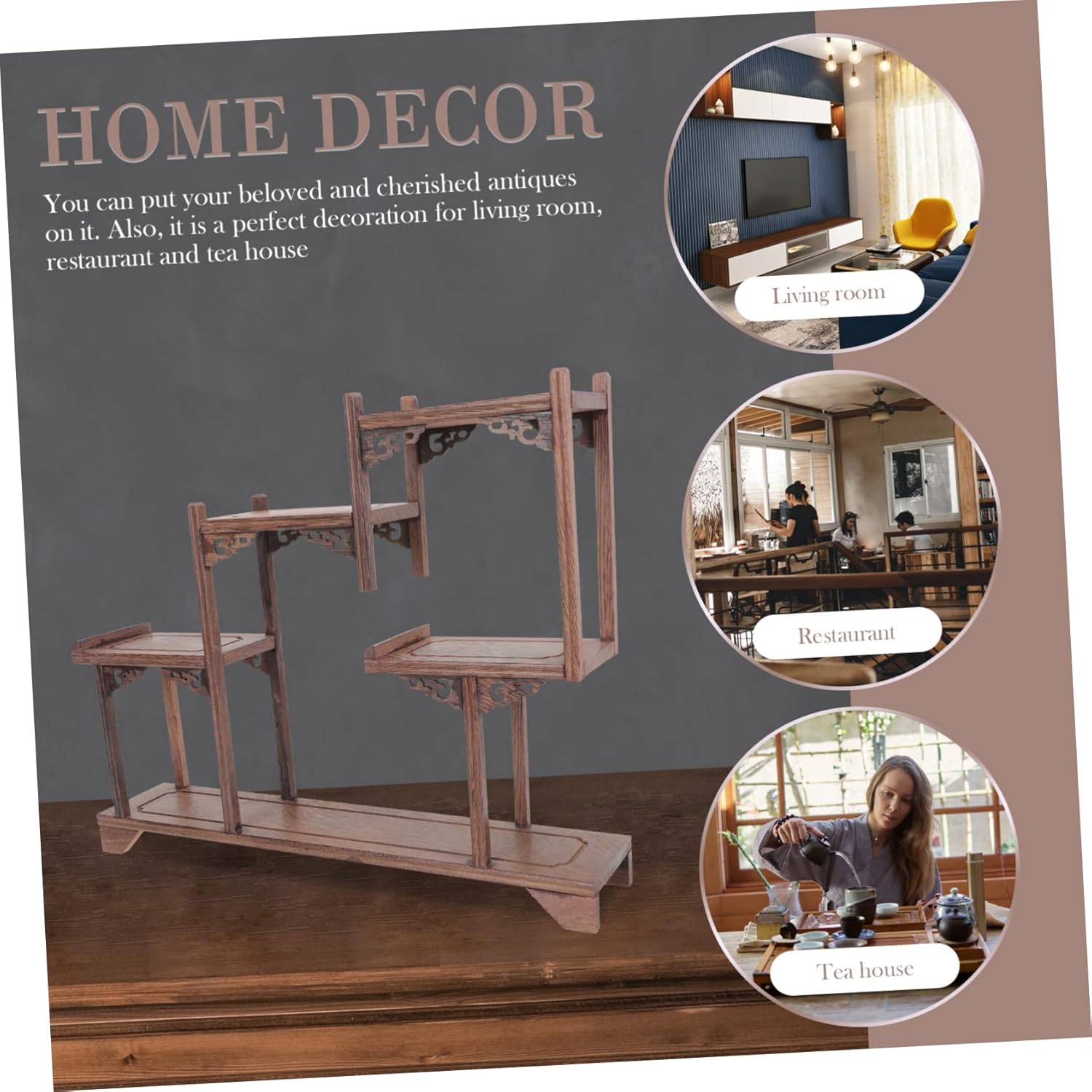 Package List 1 x display rack Characteristics -Color:Brown antique storage shelf -Material: Wood wooden crafts -It can be placed anywhere as ornament, making your home more beautiful and high-end antique storage rack. -Using this wooden shelf adornment for decoration can your of life curio storage rack. -Made of reliable and wearable wooden material, making it for long-term use requirements wood display stand. -Put it on your desk, it looks elegant and charming, highlighting your antique shelf. -It is very suitable as a home decoration and can create a unique artistic decor.Goods Descriptionantique storage rack you deserve to have this adornment.curio stands Beautifully designed, suitable for homes, hotels, offices and other places.multi-layers curio storage rack This is a wooden antique showing rack, made of healthy and material, and can be used for a long time
