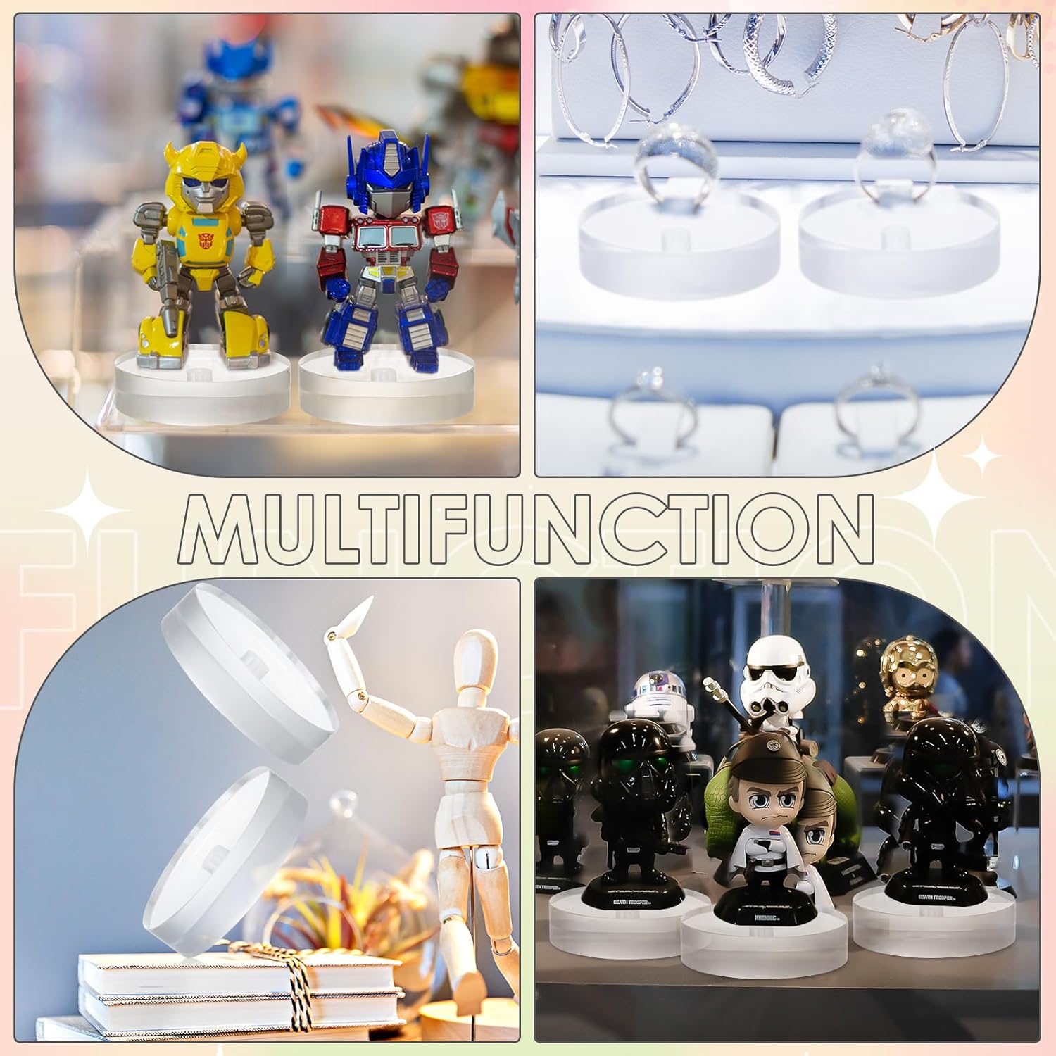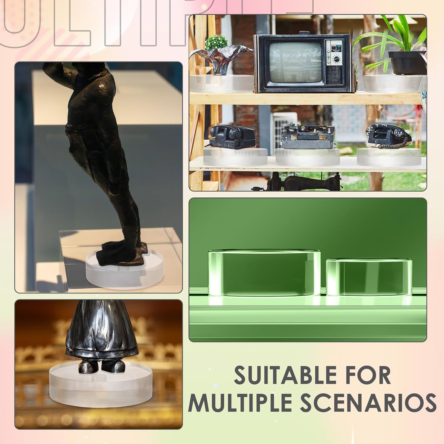 Features: Our acrylic base stands are versatile and can display a variety of items, including collectibles, jewelry, artifacts, souvenirs, toys, figurines, antiques, dolls, trophies, etc. The transparent nature of the acrylic block creates a floating effect for your favorite items, making your collections or crafts stand out Specifications: Material: acrylic Color: clear Size: about 5 x 5 x 2.5 cm/ 4 x 4 x 1 inch/10 x 10 x 2.5 cm Package includes: 8 x Acrylic jewelry block Notes: Manual measurement, please allow slight errors on size. The color may exist a slight difference due to different screen displays. Pointed parts included, please ensure that little people use them under the supervision of adults.