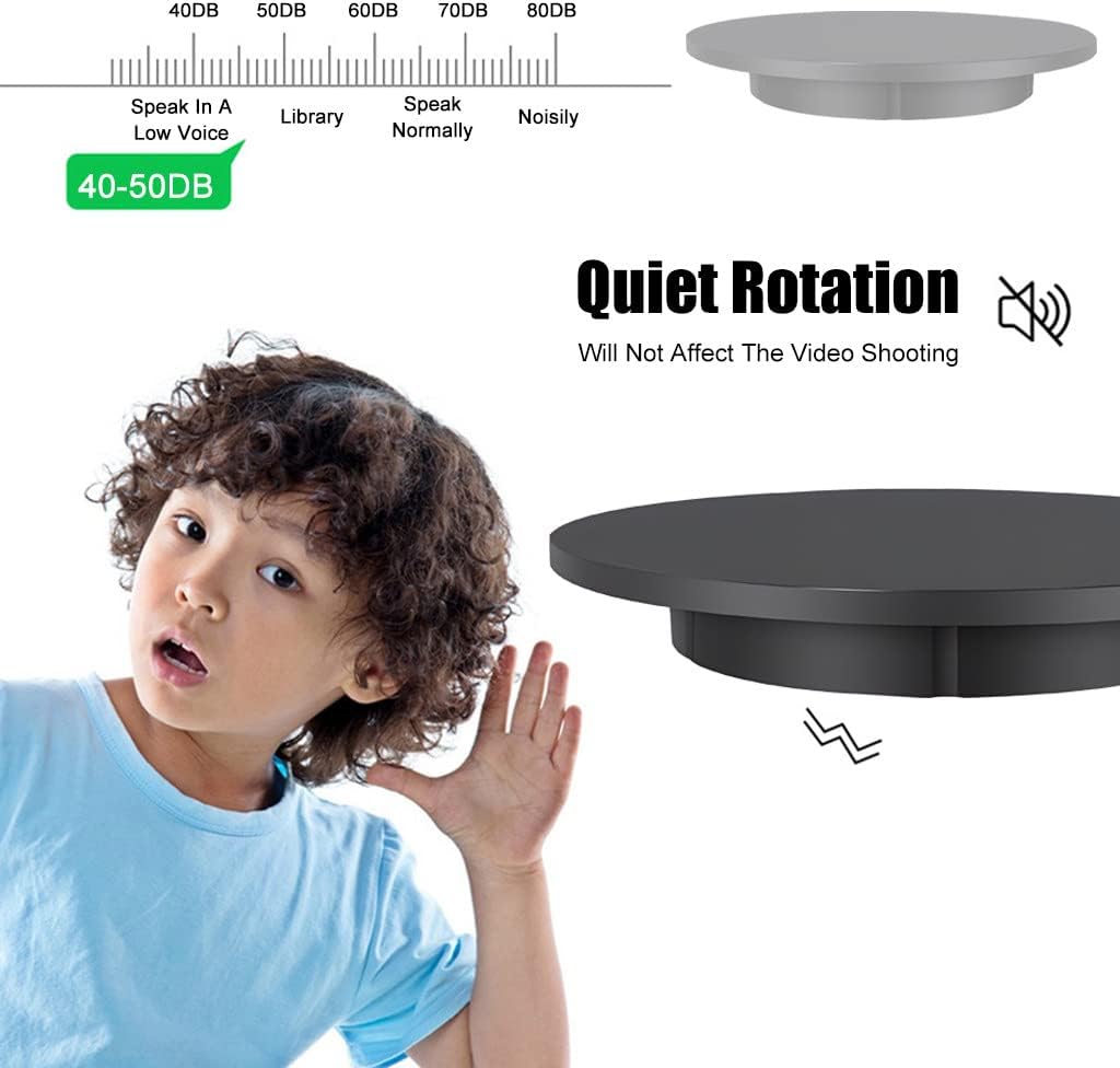 ▶About FONOBO Electric TurntableThis rotating display stand made of ABS plastic is sturdy and with strong load capacity. With exquisite mirror-like surface, it makes the displaying products more prominent and eye-catching. Suitable for commercial use to display jewelry, watch, cosmetic, digital camera and more.▶ Why Choose Our Electric Turntable ?● Rotation is smoother● Smaller sound● More load bearing● Longer battery life● 360-degree display your merchandise, increase sales● You don’t need to manually turn the table just to get a 360⁰ view of the product, It is completely motorized▶ Product Description● Color: Black/White● Size: 17.7x2.7IN/42x7CM● Maximum Load: 220 LB/100 kg● Material: ABS● 7-Speed Speed Regulation: 22-60 Seconds/Lap▶ How to use Our product display turntable?● Put the turntable at an appropriate place where you are going to display your product, you may need to consider the lights, settings, etc● Plug in, then turn on the switch to check if the turntable can rotate well● Put the product on the turntable, choose an appropriate rotation ● You can set the angle by remote controller & speed▶ Packaging List✔ 1 x Electric Turntable suit▶Customer FirstFONOBO Electric Turntable, satisfaction guaranteed with customer service that puts you first. What's the problem Please contact us by Amazon email or official website, our support team 24h is on standby for YOU