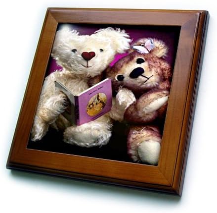 Teddy Bear reading Framed Tile is 8" x 8" with a 6" x 6" high gloss inset ceramic tile, surrounded by a solid wood frame with pre-drilled keyhole for easy wall mounting.