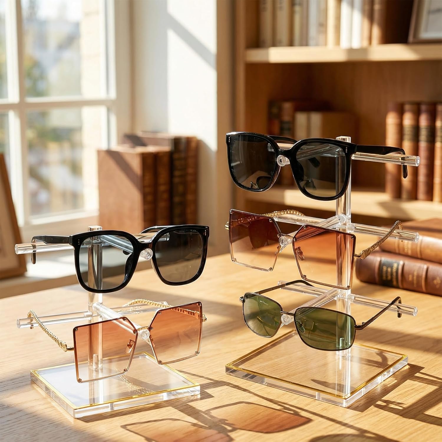 2Pcs Adjustable Purse Stands & 2-Tier 3-Tier Sunglasses Display Combo, Clear Handbag Eyeglasses Organizer for Retail Closet
