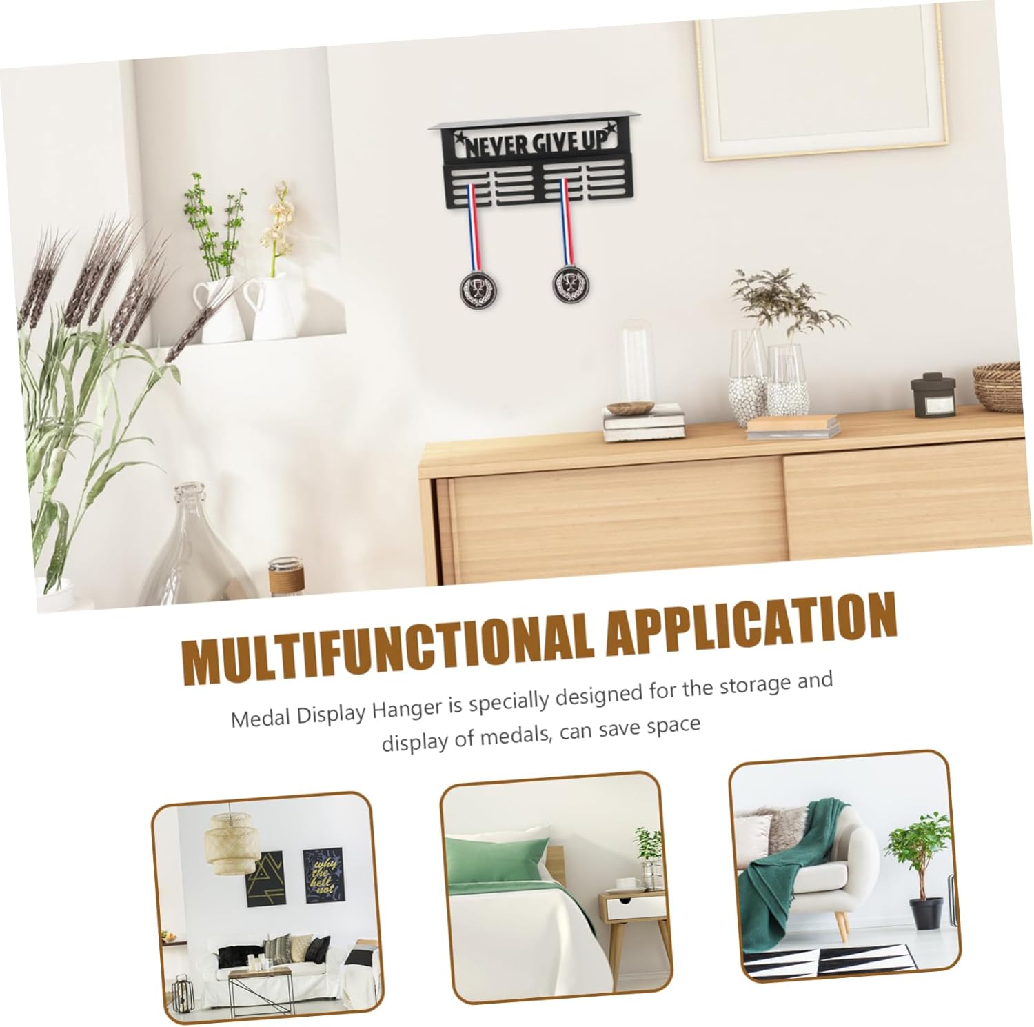 Package List 1 x medal display hanger Features -Material:Iron award shelf rack -Straightforward installation: With a straightforward installation process, setting up and relocating this hanger is a breeze, maximizing your medal hanger display. -Showcase medals: Proudly showcase your marathon achievements with this elegant and motivational medal hanger medal shelf. -Versatile : Designed to accommodate medals from various sports, it offers a versatile for all your display needs shelves for trophies. -Practical use: The medal display stand is a very practical tool, which can help you to display and store commemorative medals medal display. -Size:42.50X19.50X11.00cm/16.70X7.66X4.32in hanging medal display -Stylish design: Elevate your medals into a piece of stylish home decor with this display shelf trophy shelf with hooks. -Color:Black wall-mounted medal standGoods Informationmedal hangers The easy installation process ensures that you can set it up quickly and move it whenever needed.medal hanger display With its space-saving design, this medal and trophy display shelf helps you keep your achievements in order without cluttering your space.runner medal hanger display This versatile medal hanger display is suitable for various sports medals, from running to gymnastics