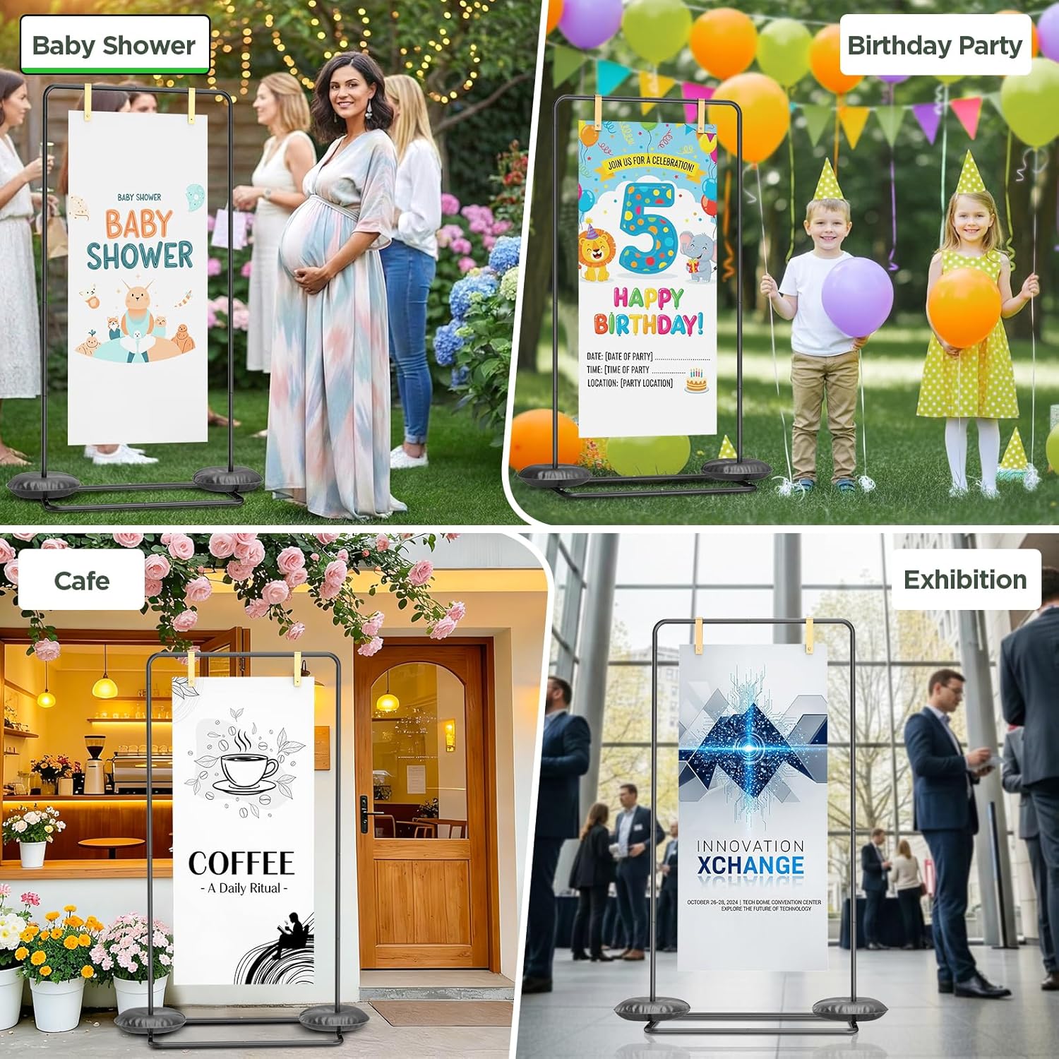 CFWedding Sign Holder Adjustable up to 5.7 FT Tall - Welcome to Our Wedding Sign Stand with Design Bundle, Hanging Straps & Water Bags, Seating Chart Display, Metal Easel for Baby Shower & Party